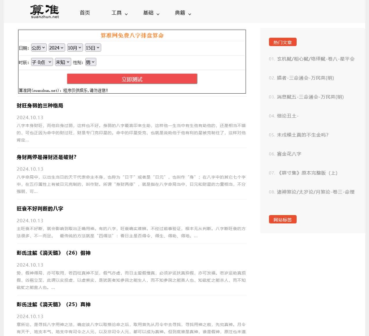 八字算命,在线算命,周易算命,免费算命,八字排盘,命理典籍在线查询(滴天髓、三命通会、渊海子平、神峰通考、千里命稿、命理约言、命理探源等)