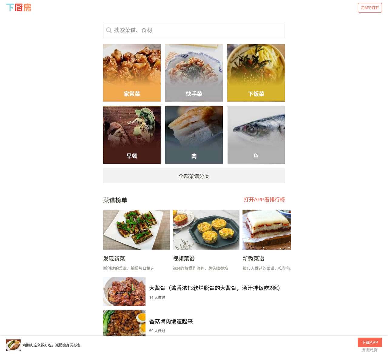 下厨房美食菜谱网倡导在家烹饪、健康的生活方式,提供有版权的实用菜谱做法与饮食知识,提供厨师和美食爱好者一个记录、分享的平台。