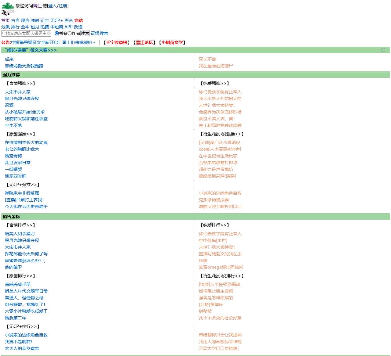 | 晋江 | 登入、注册、首页、古言、现言、纯爱、衍生、无CP+、百合、完结、分类、排行、全本、包月、免费、中短篇、APP、反馈、高级搜索 |