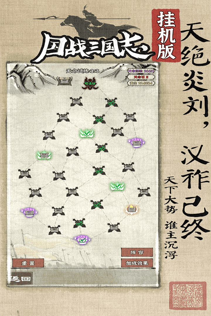我们想做一款挂机有策略的简单SLG,玩法上,从一开始的多人竞技SLG文字游戏,到单机挂机向收菜游戏的转变,带点弱竞技和社交,挂挂机,收收菜,有空打打敌国的小国战……玩法持续更新中