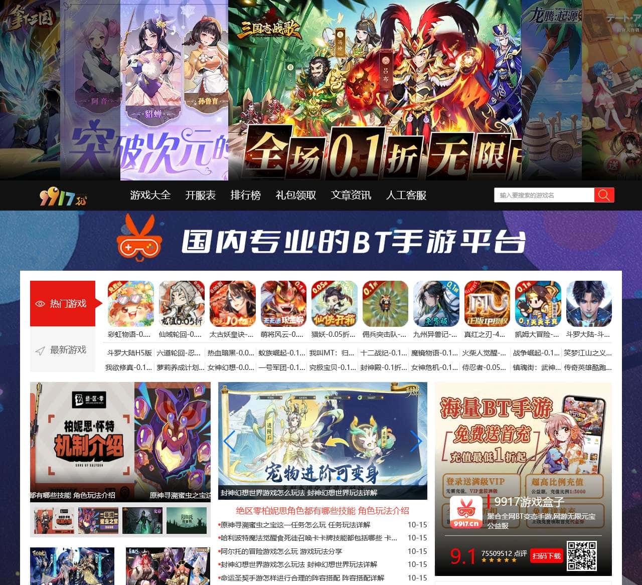 9917玩手游是国内第一bt手游平台,9917玩手游官网聚合全网安卓iosbt手游私服,破解版手机游戏,变态手游sf及gm版手游下载,平台全天24小时不断更新,最新bt游戏盒子前十排行榜,给你权威的bt手游排行榜推荐。