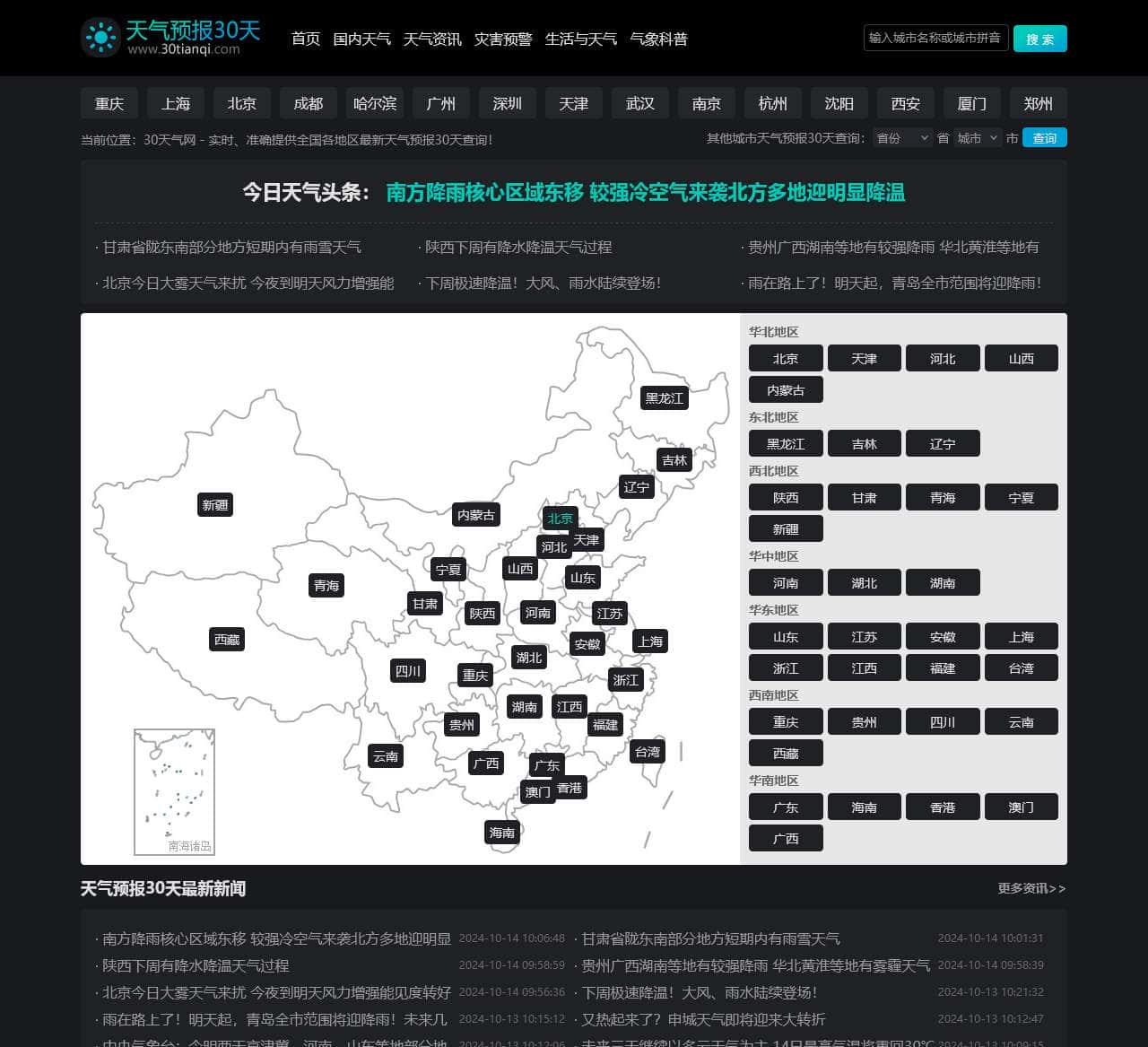 30天气网提供全国各地区天气预报30天查询服务,通过30天气网可实时查询未来30天天气预报及未来一个月天气预报趋势,生活、旅游、出差请及时关注最新、准确天气预报30天。