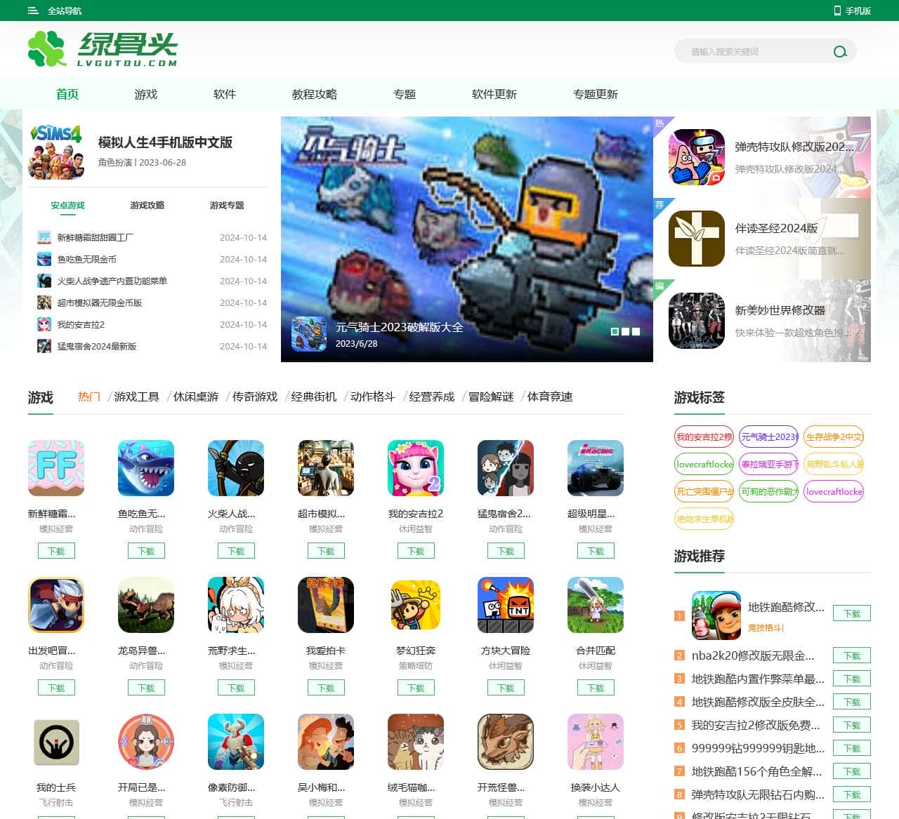 绿骨头是一个专注于游戏下载的网站,为用户提供最新的手机游戏下载资源,各种手游免费下载,最新游戏实时上线,还有好玩的游戏推荐,各种手机单机游戏,热门游戏都可以免费下载