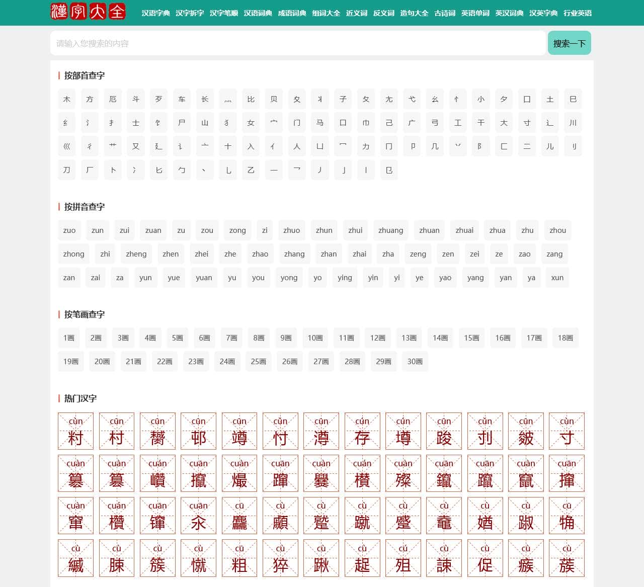 | 汉语字典 | 汉字拆字、汉字笔顺、汉语词典、成语词典、组词大全、近义词、反义词、造句大全、古诗词 |