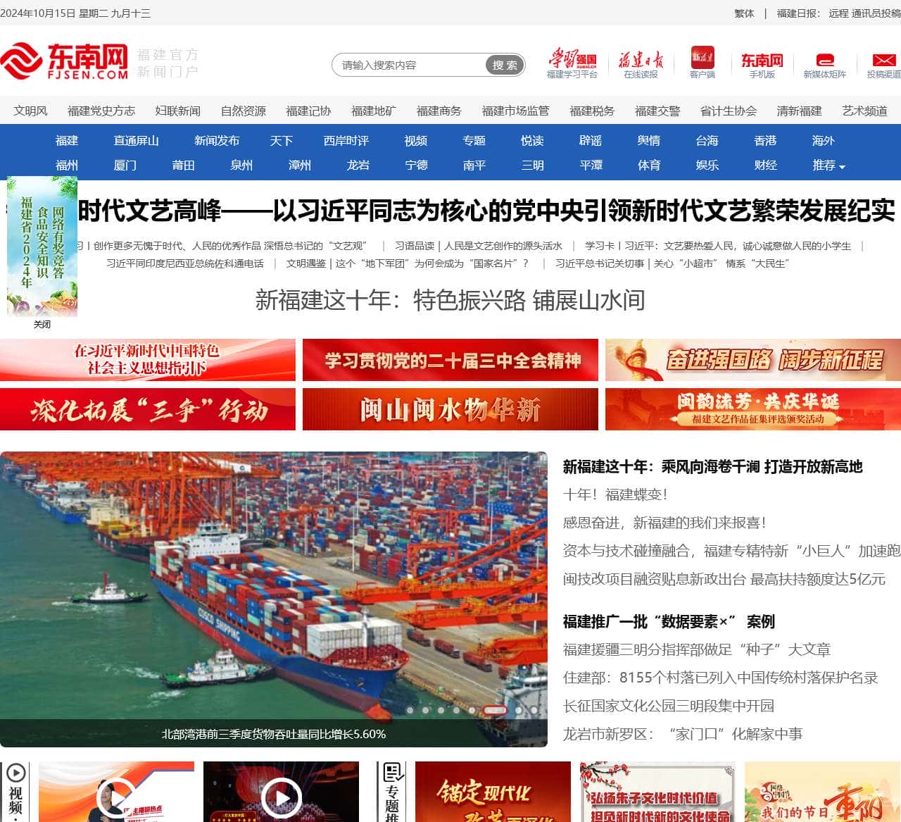 东南网(www.fjsen.com)前身为福建东南新闻网,成立于2001年10月,是经国务院新闻办公室批准的具有新闻登载资质的省级重点新闻网站。东南网是福建省规模最大的新闻门户网站,设有新闻、互动、资讯等版块30多个频道200多个栏目。借助上千名专职记者和通讯员在各地的新闻采集,东南网每天提供新闻资讯数千条,致力打造最快的本地新闻、最强的时政报道。网站同时发布福建日报报业集团旗下各报刊的数字报和电子版,提供各种本土生活资讯,搭建电子杂志、网络广告、博客、SNS交友、在线调查、视频、RSS订阅等综合性服务平台,介入丰富多彩的虚拟空间。