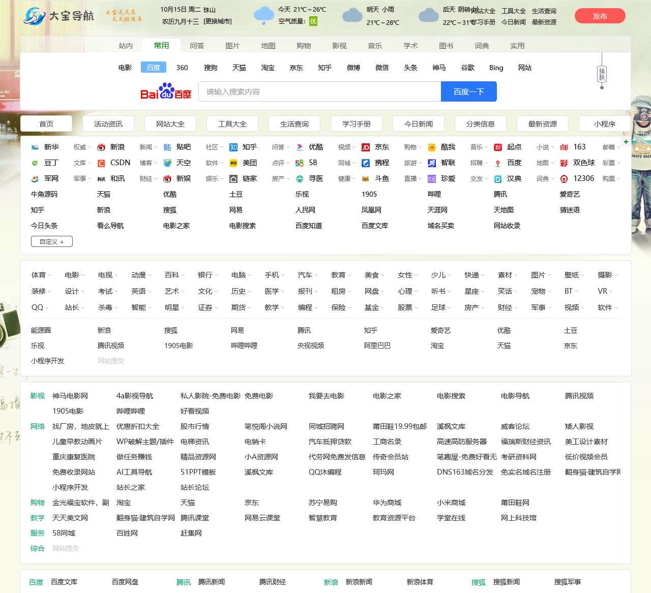 大宝导航网,免费网站大全,好看网站大全,免费网站资源整理分享推荐,全人工编辑的开放式网站网址分类目录及资讯发布平台,收录国内外、各行业优秀网站网址,旨在为用户提供网站分类目录网站网址检索、优秀网站网址目录参考、网站网址优化推广及互联网资讯服务。