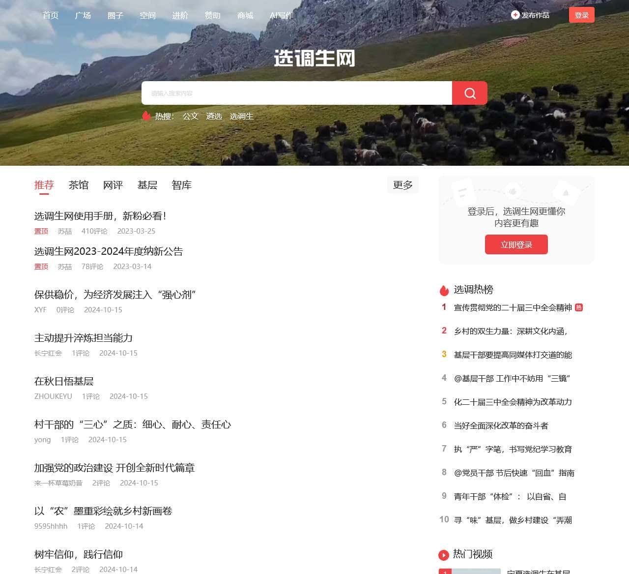 全国各地选调生共同打造的在职选调生政策、交流、成长平台,展选调生风采,树选调生形象,让在校大学生正确认识和选择选调生这条道路、让在职选调生见贤思齐取得进步、让社会大众了解基层政治以及选调生群体,从而扩大选调生制度和群体的影响力,推动选调生队伍更好为祖国和人民服务!
