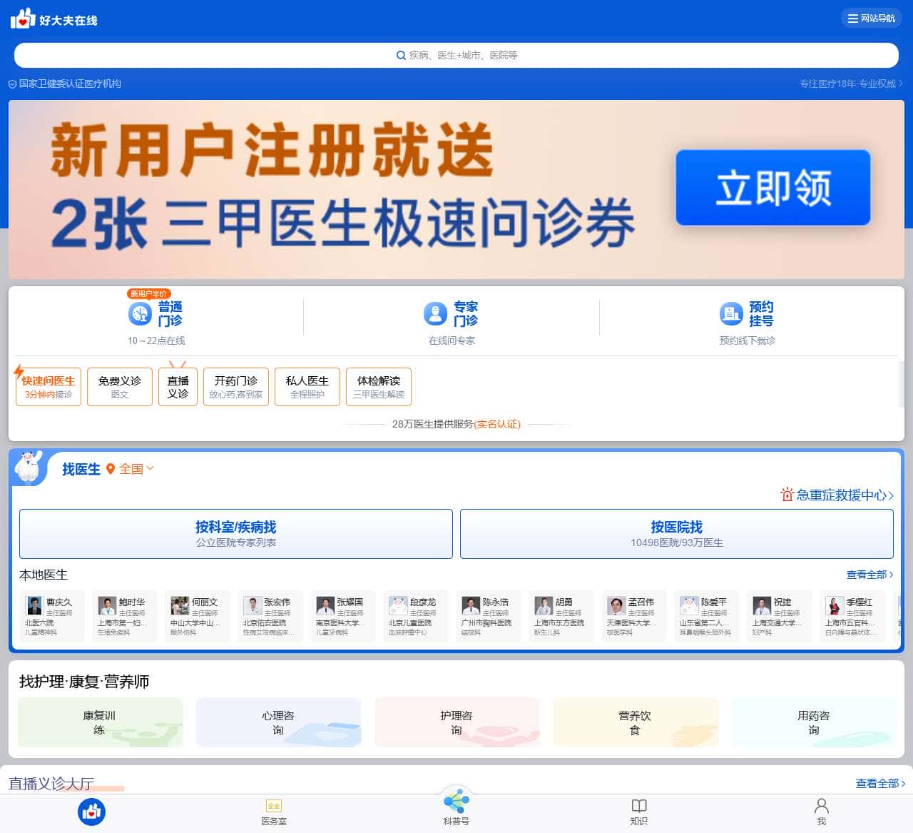 | 普通门诊 | 10~22点在线,新用户半价 |
