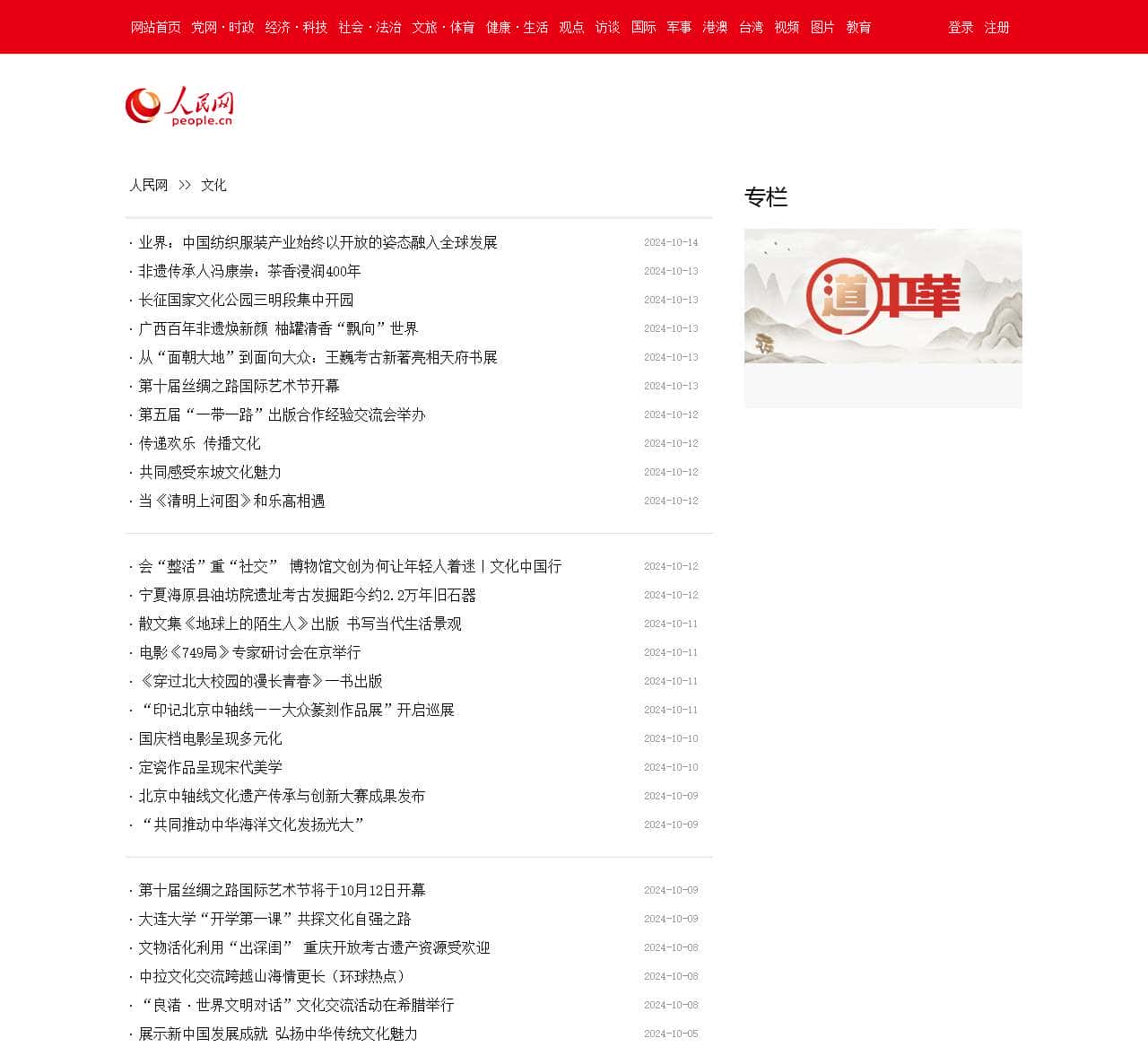 新锐、高端、雅趣的人民网文化频道,走名家、高端、深度路线,频道按照“大文化”的发展思路,重点关注文艺事业、文化产业、影视演出、书画艺术、图书出版五个领域,着力打造文化批评、文化讲坛、名人库、故事会、红黑榜等栏目,增强权威性,服务性,力争为网友提供最权威丰富专业的文化资讯,以新闻精品和丰富雅趣,打造具有具有人民网核心竞争力的中国文化第一平台.新锐、高端、雅趣的人民网文化频道,走名家、高端、深度路线,频道按照“大文化”的发展思路,重点关注文艺事业、文化产业、影视演出、书画艺术、图书出版五个领域,着力打造文化批评、文化讲坛、名人库、故事会、红黑榜等栏目,增强权威性,服务性,力争为网友提供最权威丰富专业的文化资讯,以新闻精品和丰富雅趣,打造具有具有人民网核心竞争力的中国文化第一平台。