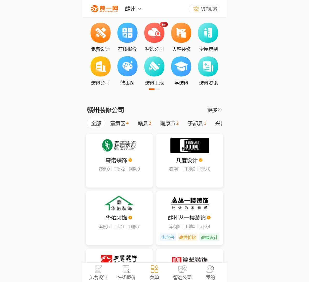 | 赣州 VIP服务 | 首页、装修公司、智选公司、在线报价、免费设计、整体软装、全屋定制、大宅装修、风格测试、效果图、看工地、学装修、设计师、找工长、看视频、装修问答、探店专访、读资讯、装修日记、我的、400-680-0011 |