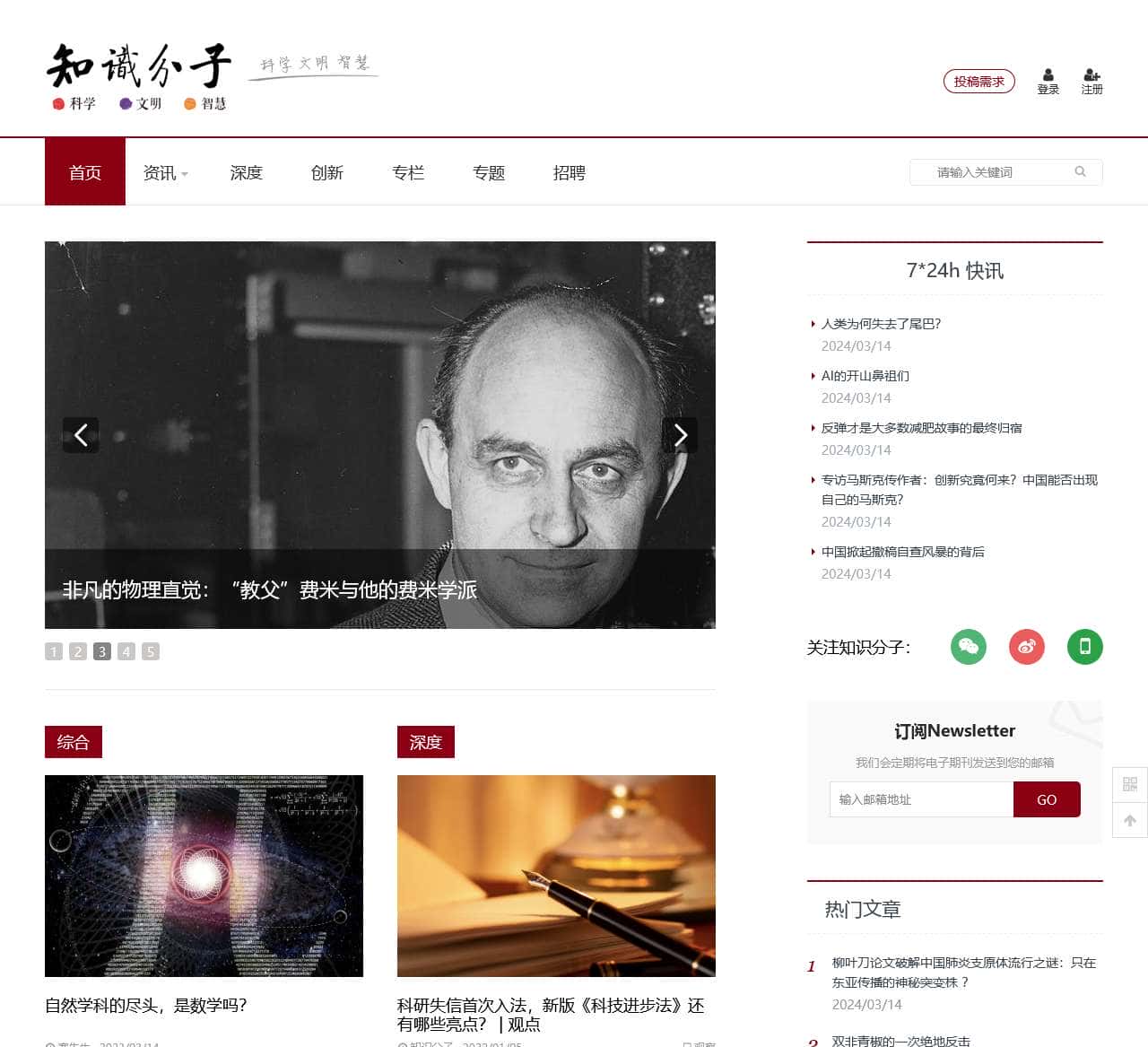 知识分子网为是国内领先的科学新媒体网站,将立足于科研群体,为广大科学家提供最新的前沿资讯,以及有价值的服务。同时关注社会、人文和思想,以及科学史。