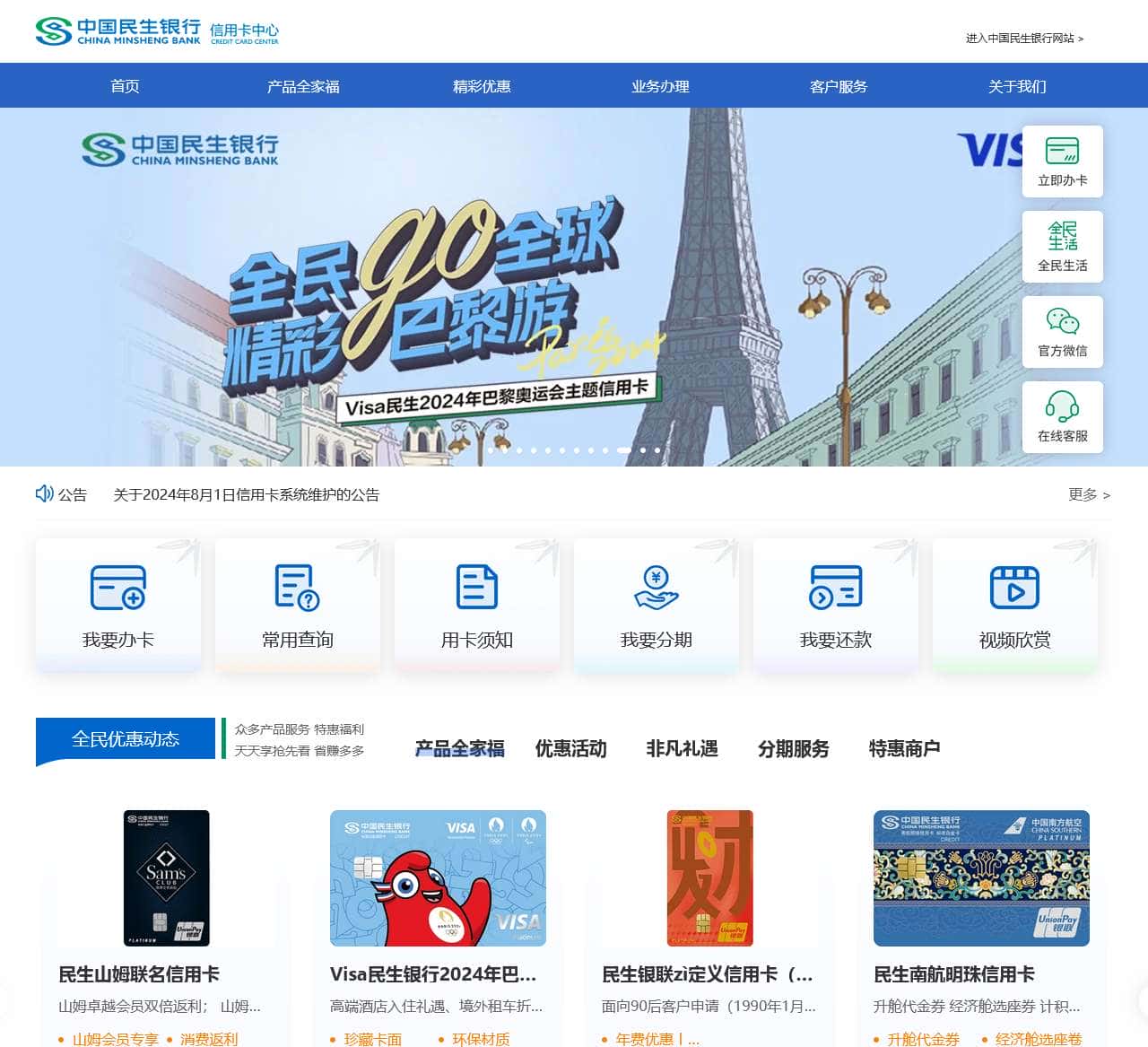 关于中国民生银行信用卡官方网站特别声明