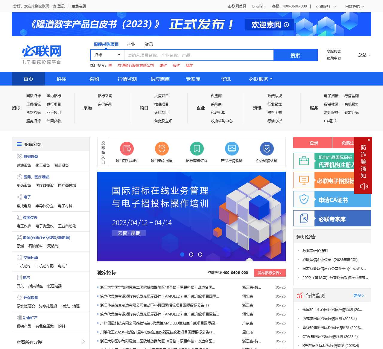 必联网是一家专注于电子招投标和采购领域的综合性网站。我们提供电子招投标、诚信投、CA证书等服务,旨在为企业和个人提供便捷高效的招投标解决方案。通过必联网,您可以找到国内招标和国际招标的信息,浏览各种采购项目和核心供应商。同时,我们还提供招标机构和专家库的查询,协助您更好地了解行业聚焦、政策法规和行情分析等信息。