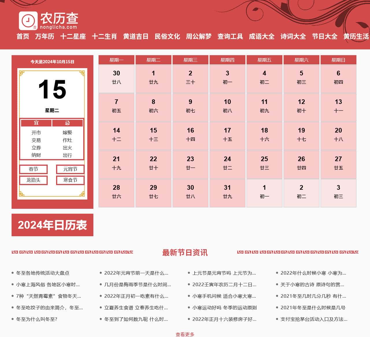 | 首页 | 万年历,十二星座,十二生肖,黄道吉日,民俗文化,周公解梦,查询工具,成语大全,诗词大全,节日大全,黄历生活 |