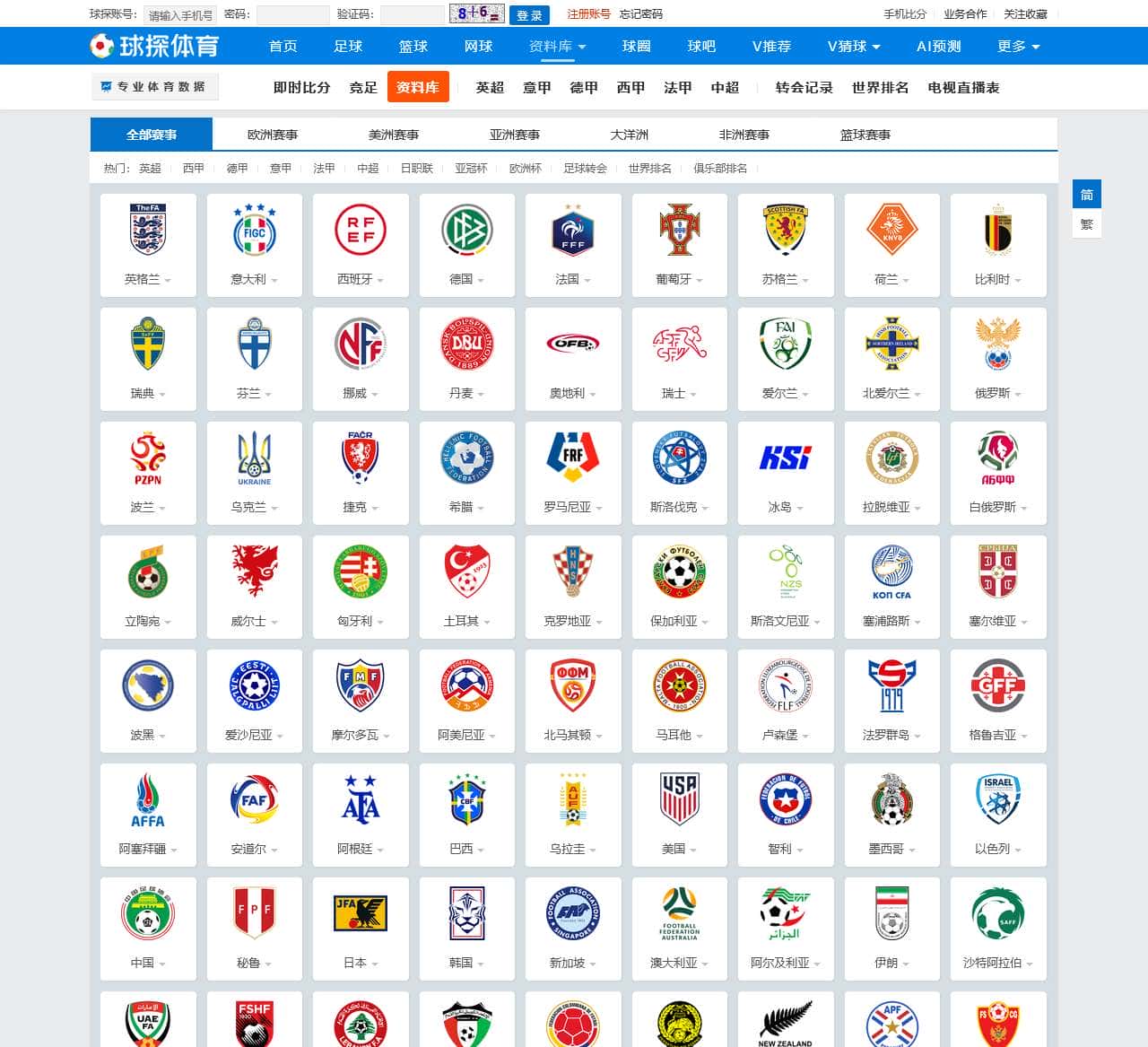 | 资料库 | 足球、篮球、球圈、球吧、V推荐、V猜球、足球、篮球、AI预测、更多、排球、棒球、冰球、赛车、乒乓球、羽毛球、斯诺克、橄榄球 |