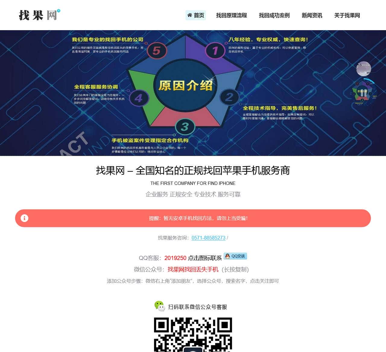 找果网,成立于2012年,是全国较早开始提供iPhone找回服务网站之一,提供专业和权威的苹果手机找回方法,公司从事丢失iPhone找回服务8年时间,累计已成功找回iPhone手机超过万余台,是全国多地治安单位指定技术合作企业!