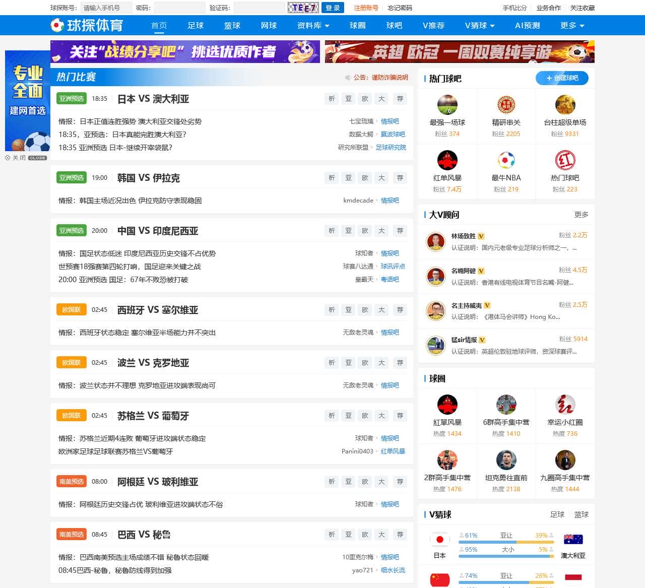 | 球圈 | 足球、篮球、球圈、球吧、V推荐、V猜球、AI预测 |