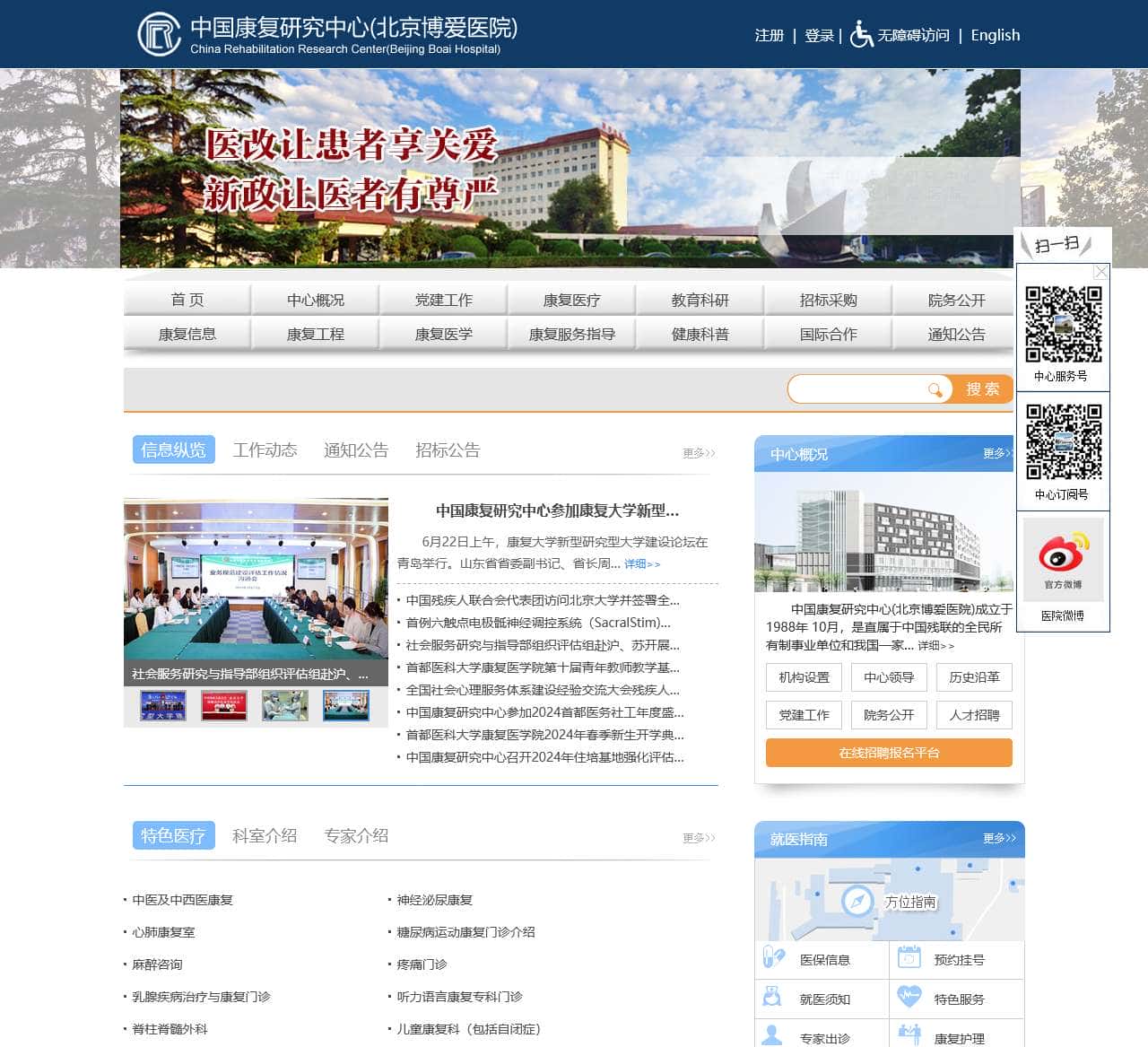 中国康复研究中心成立于1988年 10月,作为直属于中国残联的全民所有制事业单位,主要承担我国康复医疗、康复研究、人才培养、社区指导、国际交流等多领域康复工作。经过30年的探索与发展,中国康复研究中心已经成为拥有职工1700余人,占地220余亩,建筑面积12万平方米,集康复医疗、教育、科研、工程、信息、社会服务于一体的大型现代化综合性康复机构,并设有中国残联残疾预防与控制研究中心、国家孤独症康复研究中心、国家药物临床试验机构、神经损伤与康复北京市重点实验室等。中国康复研究中心具有规模最大、康复手段齐全、康复流程完善、康复模式先进、康复专家众多、康复技术创新能力突出等优势,形成了覆盖残疾预防、急性期救治、早期干预、中后期康复、职业康复和社区家庭更生等内容的中国特色全面康复服务模式。中国康复研究中心是我国现代康复医学发展史上的一座里程碑,也是我国康复事业的一颗明珠。 官方网站...