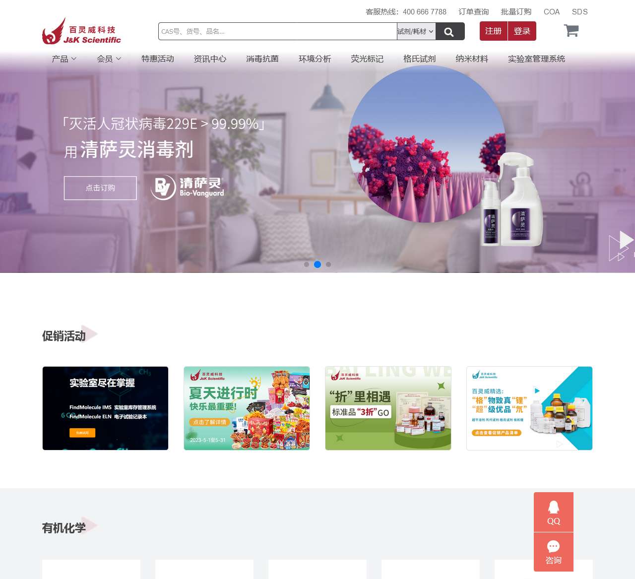 百灵威商城提供化学试剂,分析试剂,生物试剂,生化试剂,有机试剂,合成试剂,材料试剂, Accustandard标准品,wilmad核磁管,strem金属催化剂等各种实验室科研试剂及仪器耗材,CAS号查询,COA,MSDS下载一站式采购服务.订购电话400-666-7788.