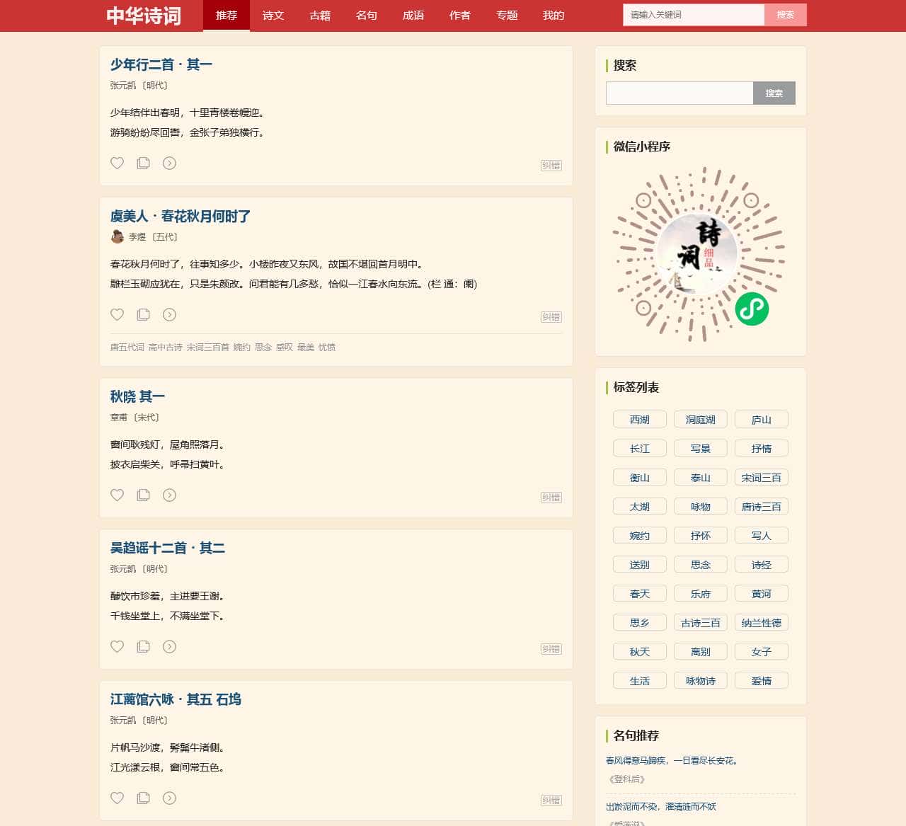 中华诗词网。现已收录古诗词70余万首,诗人近三万名,我们秉承诗词历史文化传承,为广大古诗词爱好者提供各类诗词、古诗名句、文言文、古籍等资料查询。