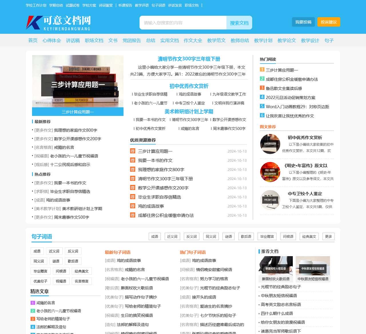可意文档网是一个专业的范文资料分享网站,提供优秀原创的工作总结、工作计划、心得体会、演讲稿、作文、应用文、教学设计等常用范文题材。