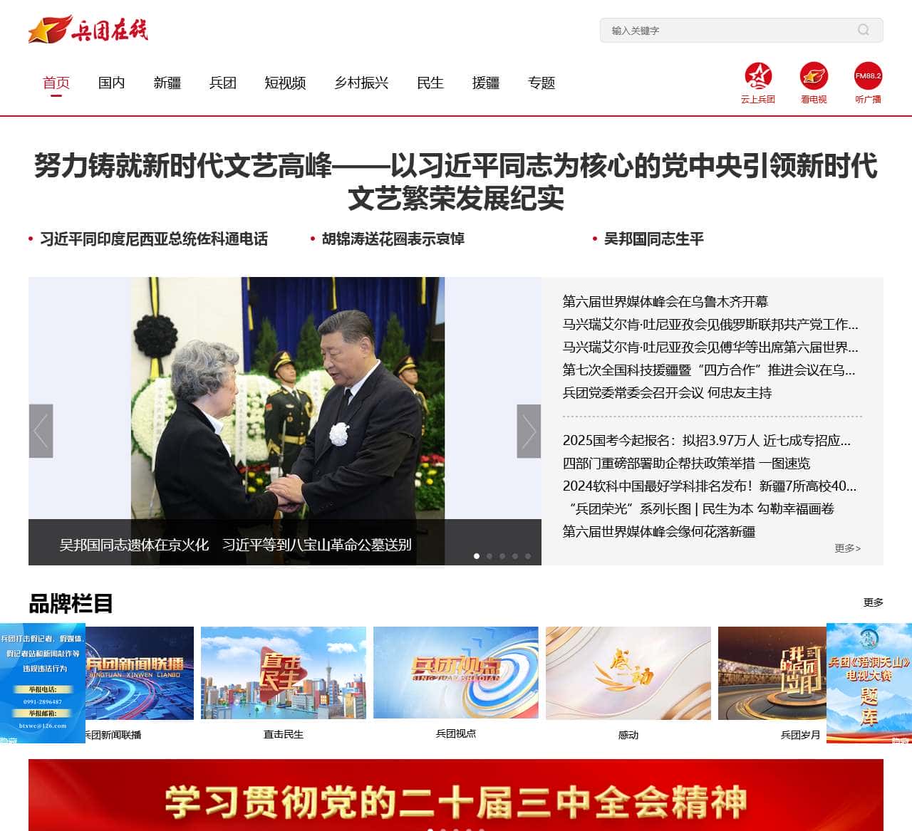 | 媒体平台 | 云上兵团用户端 兵团卫视 FM88.2兵团综合广播 央视频新疆兵团广播电视台平台 兵团在线网站 学习强国兵团学习平台 兵团广播电视台微博号 新疆兵团广播电视台抖音号 新疆兵团广播电视台哔哩哔哩号 新疆兵团广播电视台快手号 |