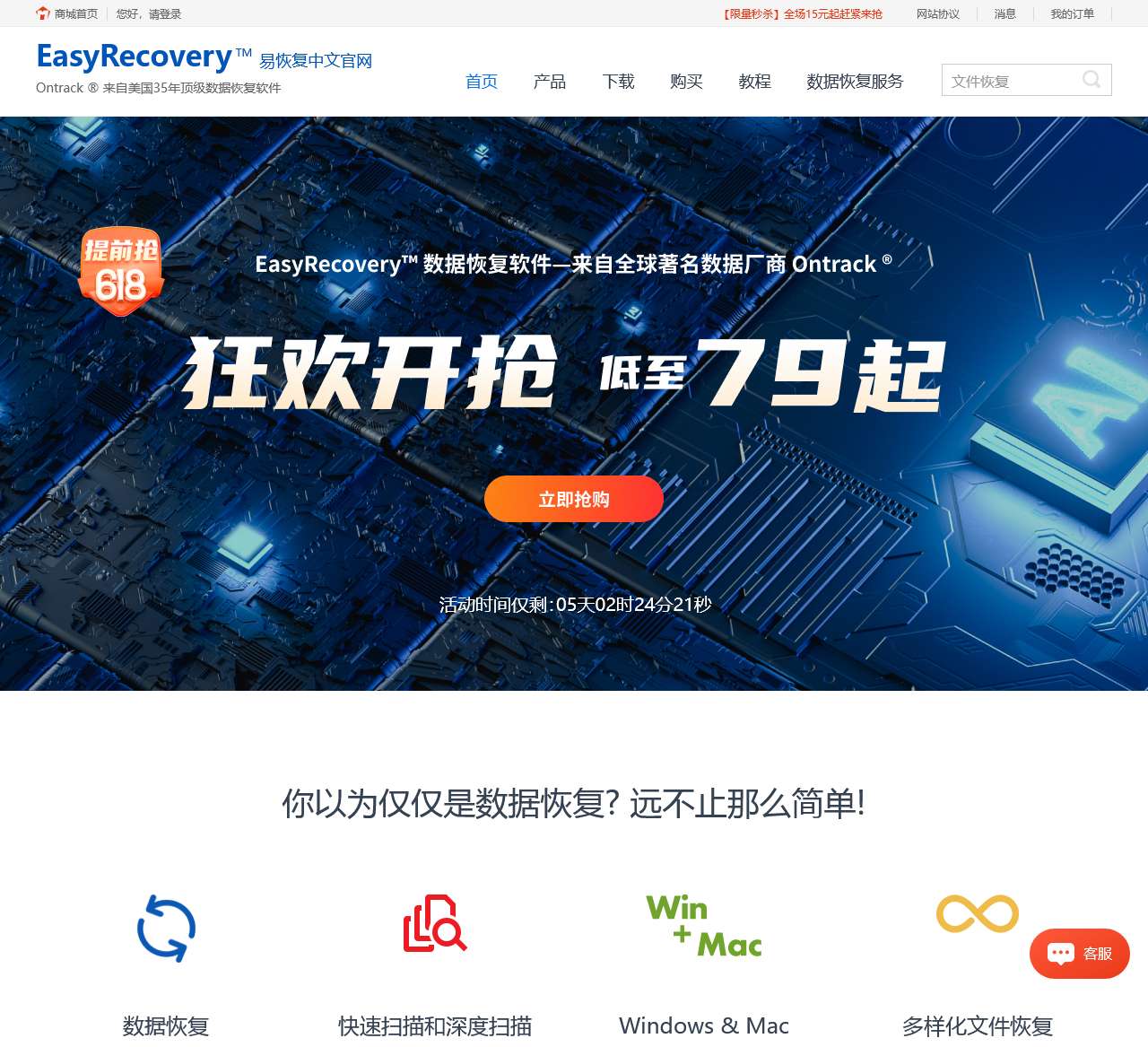 在易恢复中文官网上,您可以找到以下产品和服务: