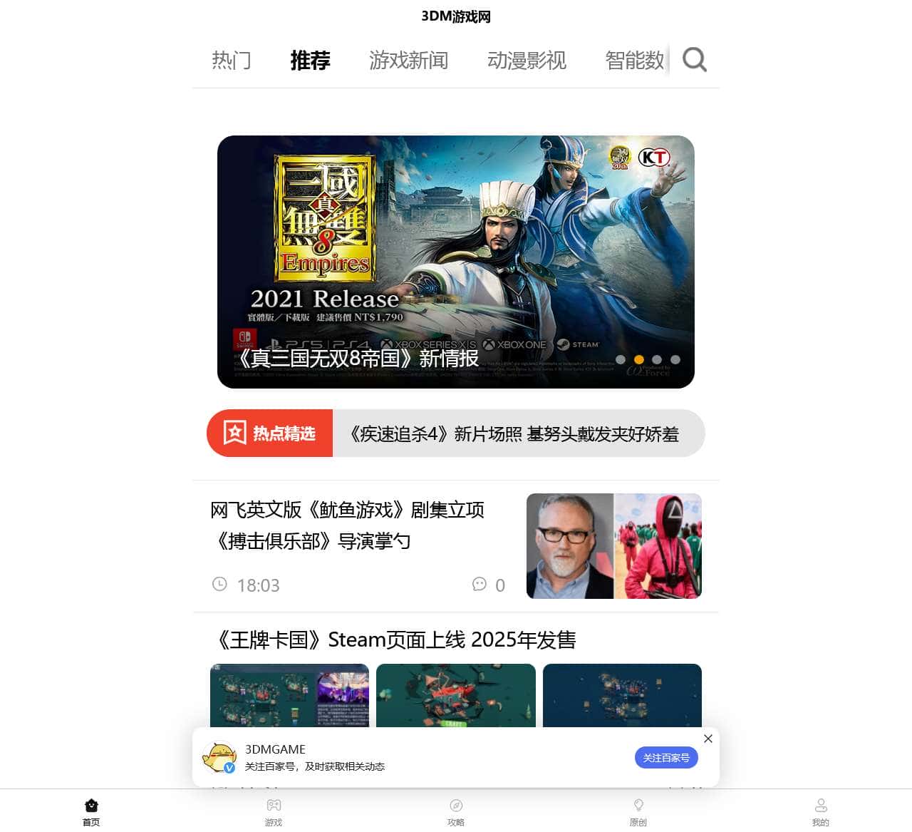 3DM游戏网为玩家提供最新的游戏新闻、攻略、原创文章等游戏内容,经过多年努力已成为国内知名游戏媒体网站。