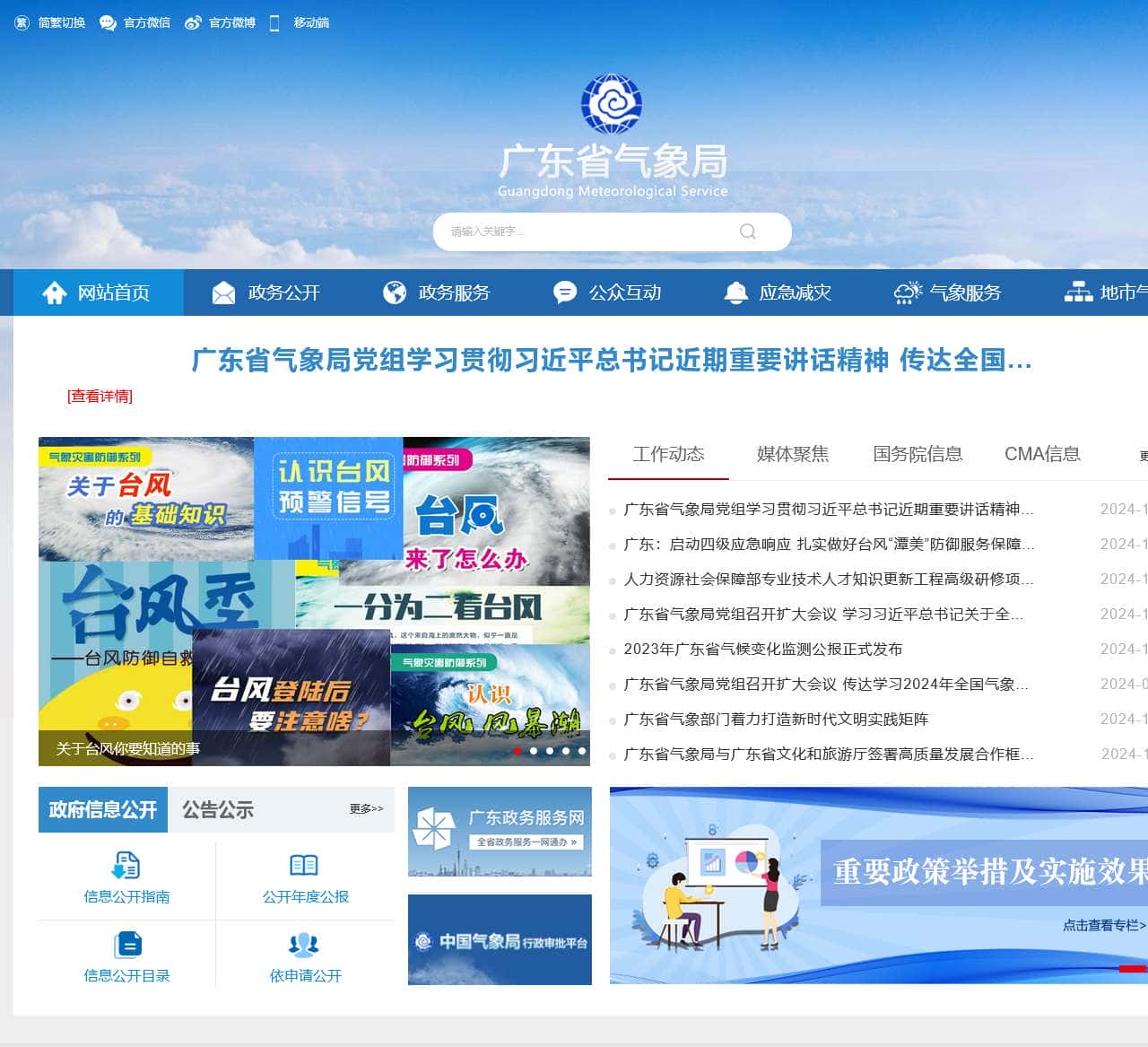 广东省气象局政府门户网站,广东省气象局在中国气象局和广东省人民政府领导下,承担本行政区域内气象工作的政府行政管理职能,依法履行气象主管机构的各项职责。为您提供最新权威气象政务信息、天气预报、气象预警、气候变化、防灾减灾、气象科普等权威官方信息