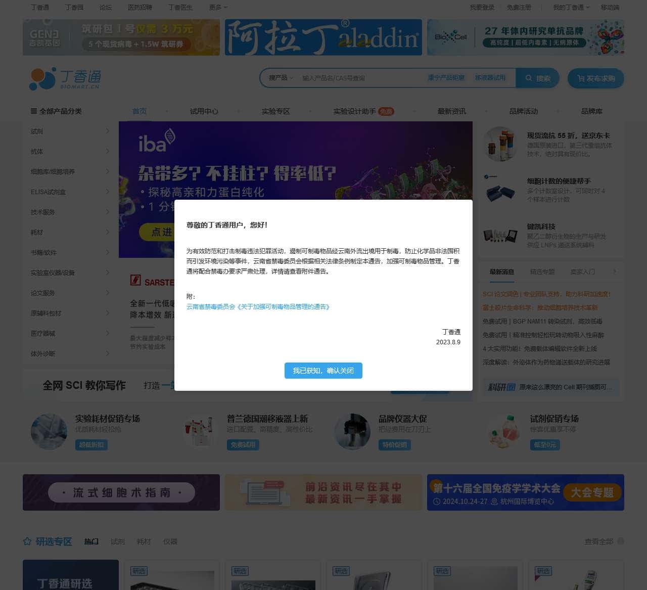 丁香通是丁香园旗下专业的生物医药科研线上采购平台,拥有试剂抗体、实验仪器、ELISA试剂盒、医疗设备、辅料原料等各类产品供求、价格/报价等信息近6000万条,4万多家品牌供应商入驻,致力为医药企业和生物医药相关行业人士提供优质的采购渠道和服务。