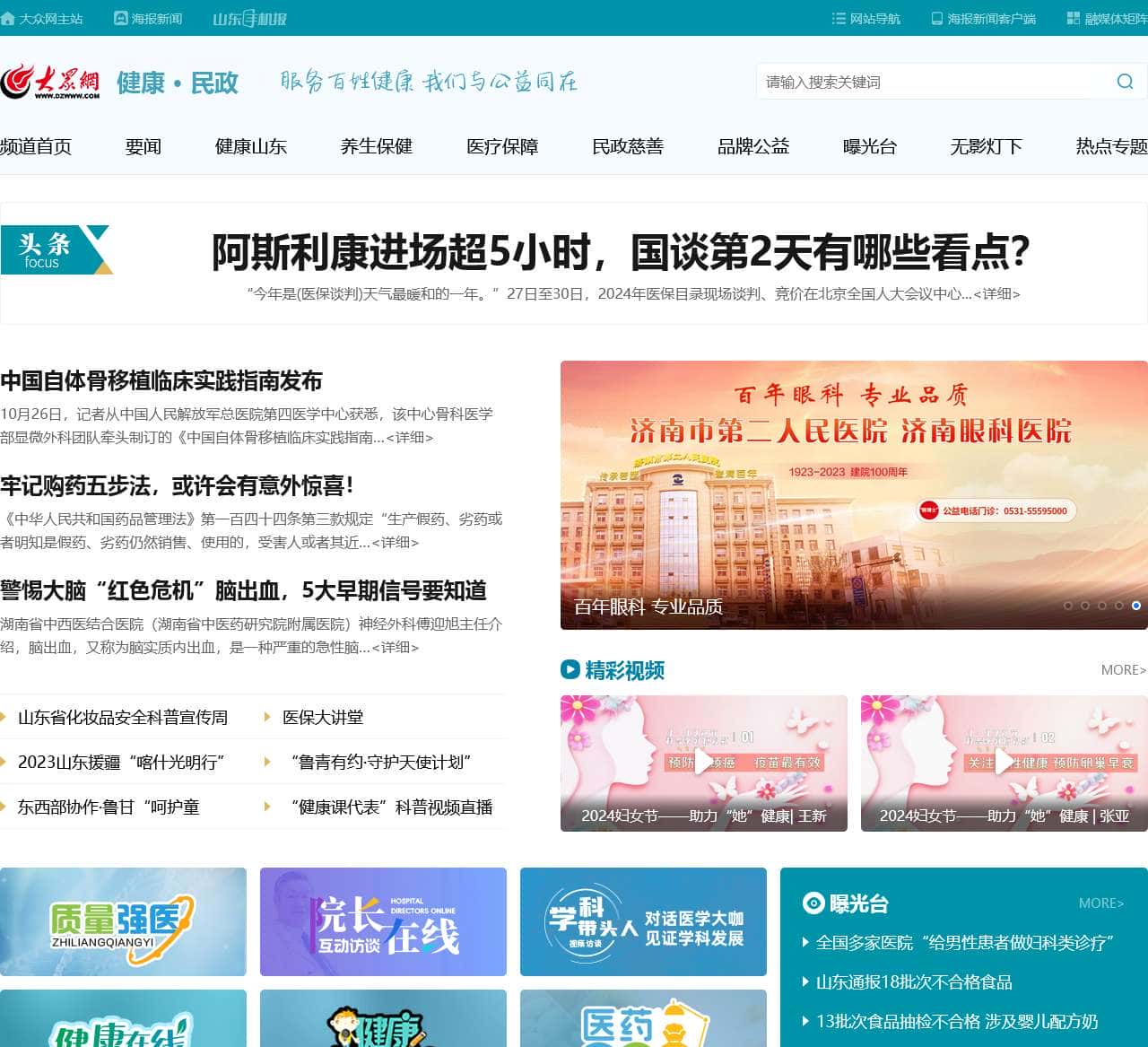 | 频道首页 | 要闻、健康山东、养生保健、医疗保障、民政慈善、品牌公益、曝光台、无影灯下、热点专题 |