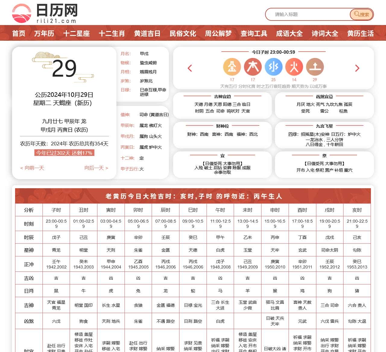 | 首页 | 万年历、十二星座、十二生肖、黄道吉日、民俗文化、周公解梦、查询工具、成语大全、诗词大全、黄历生活 < 向前一天 向后一天 > 子时、丑时、寅时、卯时、辰时、巳时、午时、未时、申时、酉时、戌时、亥时 |