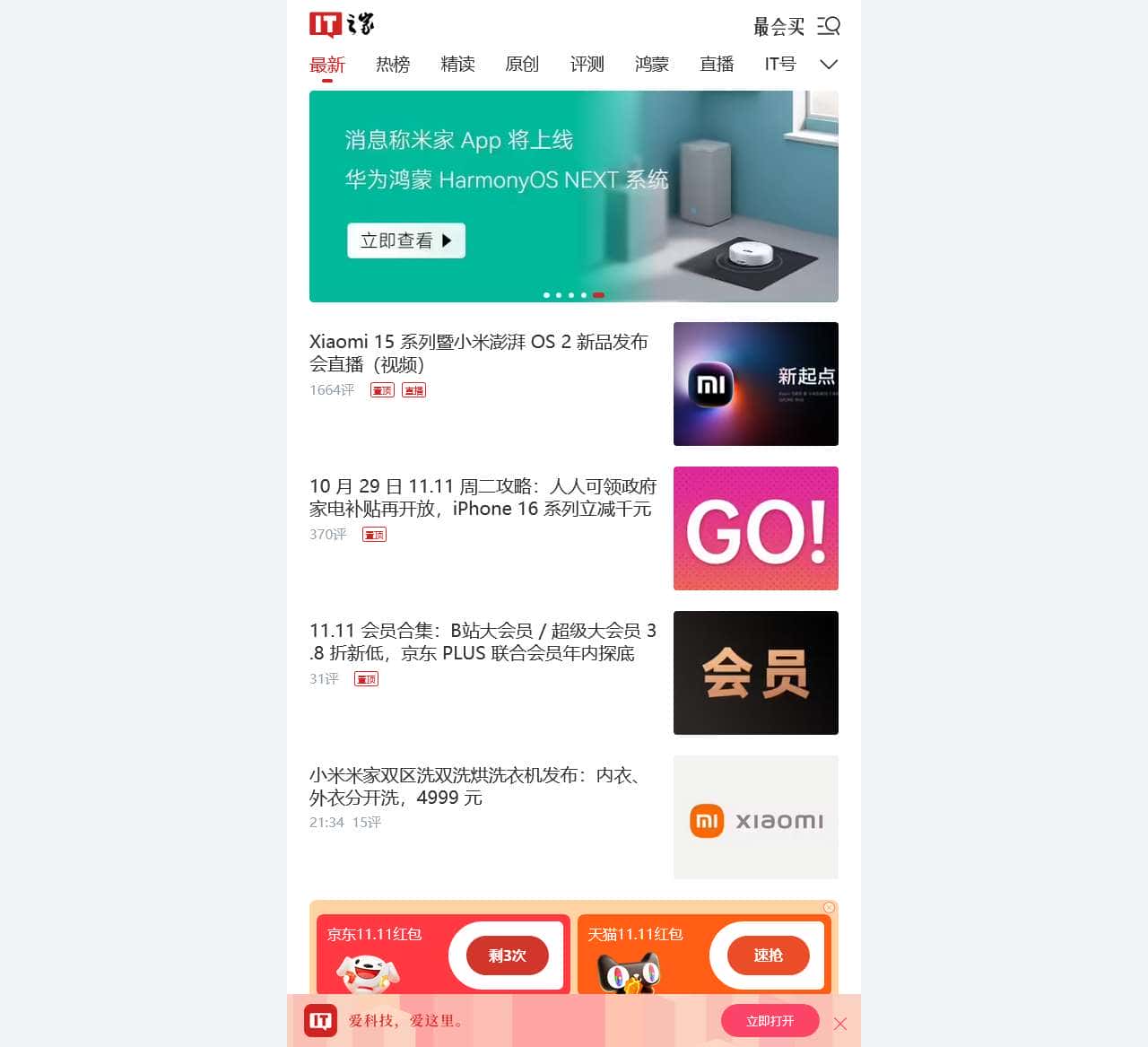 | – | 消息称米家 App 将上线华为鸿蒙 HarmonyOS NEXT 系统 | |