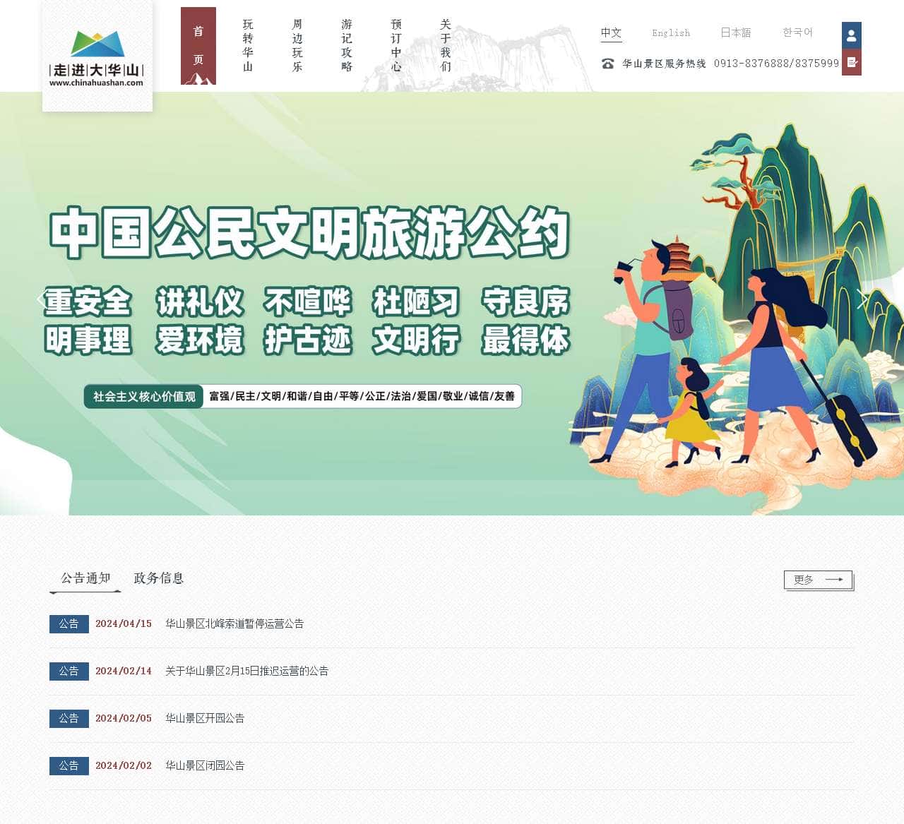 | 公告 | 2024/02/05 | 华山景区开园公告 |
