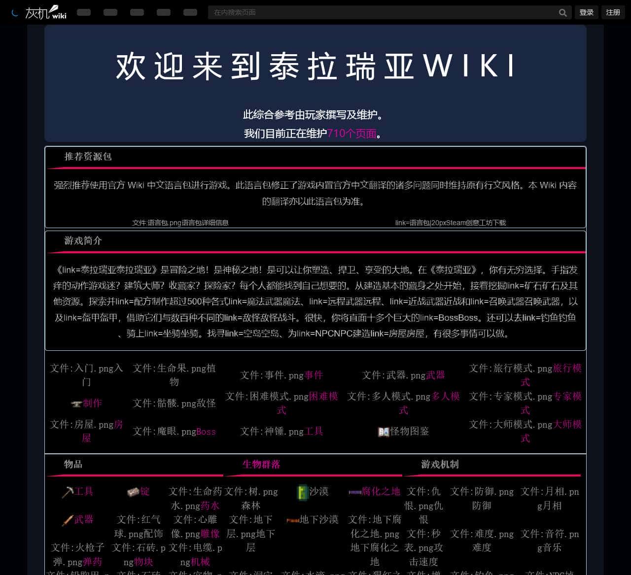 | 游戏简介 | link=泰拉瑞亚 | 泰拉瑞亚 | link=矿石 |