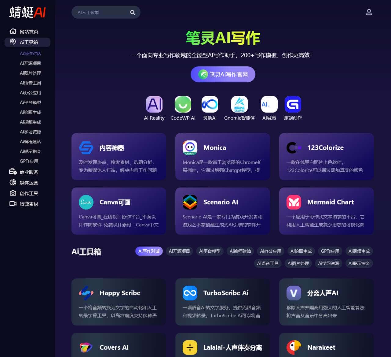 | AI工具 | 笔灵AI写作官网, AI Reality, CodeWP AI, 灵动AI, Gnomic智能体, AI城市, 即刻创作, 内容神器及时发现热点, 搜索素材, 选题分析 |