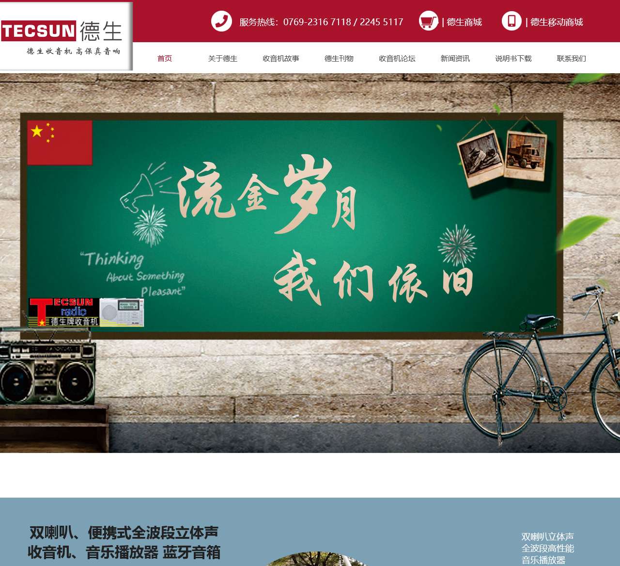 东莞市德生通用电器制造有限公司于1994年在东莞市工商局注册成立,公司注册资本为400万元,到目前为止资产总额已达6000多万元。德生公司以生产收音机等消费类电子电器产品为主,现拥有几十名经验丰富的优秀设计师、制造工程师、品质管理工程师及1000多名训练有素的生产制造人员。16000平方米的生产面积,并引进了自动生产线及最先进的测试仪器仪表,全面实现了电脑辅助产品设计及制造管理,具备了年生产300