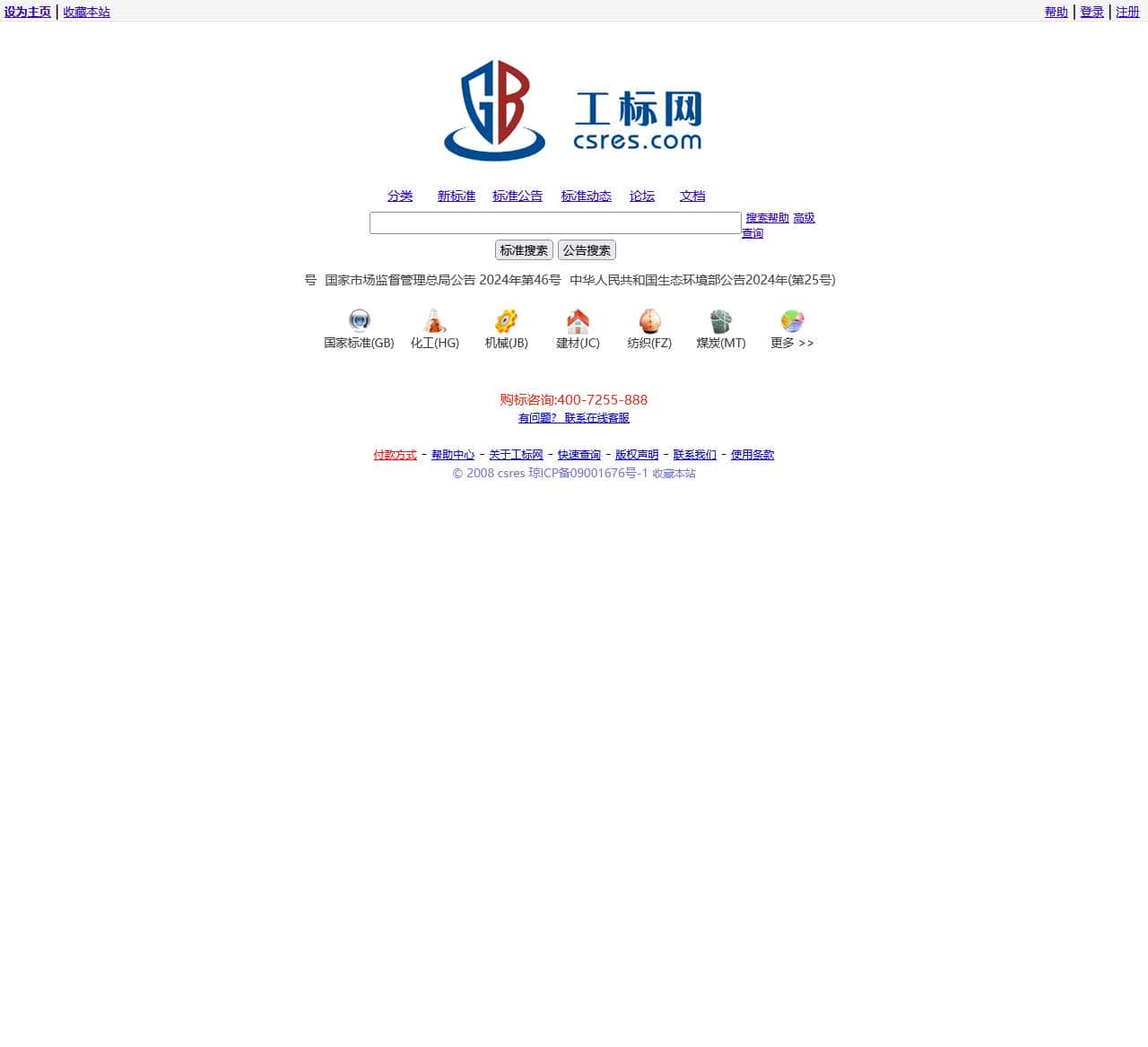 | 网站功能 | 分类、新标准、标准公告、标准动态、论坛、文档、搜索协助、高级查询 |