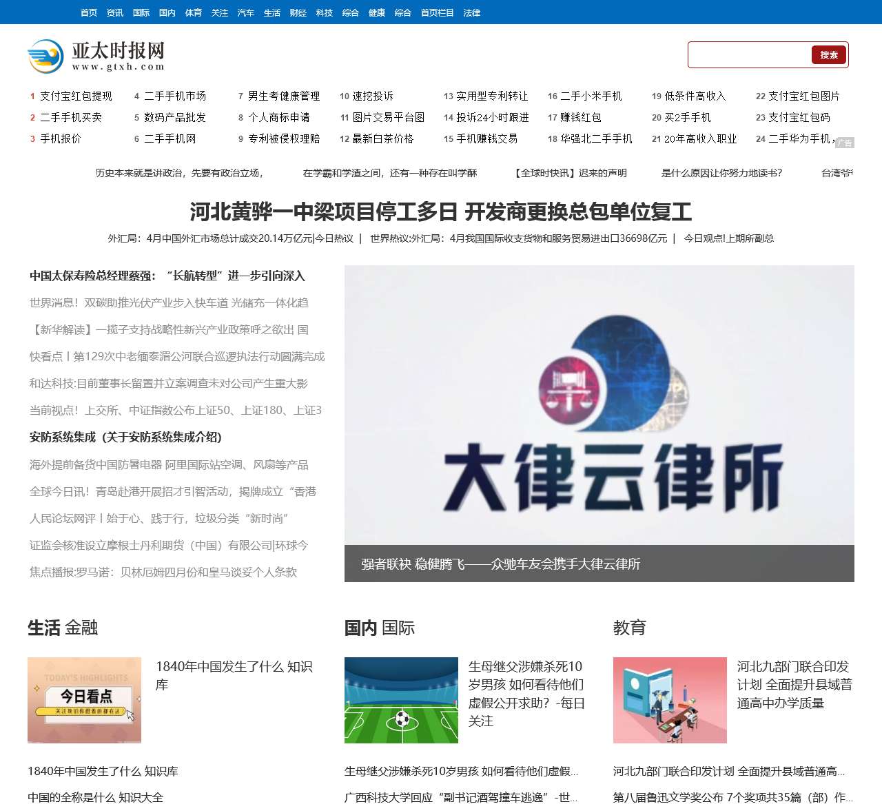 亚太时报网为全球用户24小时提供全面及时的中文资讯,内容覆盖国内外新闻事件、体坛赛事、娱乐时尚、产业资讯、实用信息等,设有新闻、体育、娱乐、财经、科技、房产、汽车等30多个内容频道,同时开设博客、视频、论坛等自由互动交流空间。