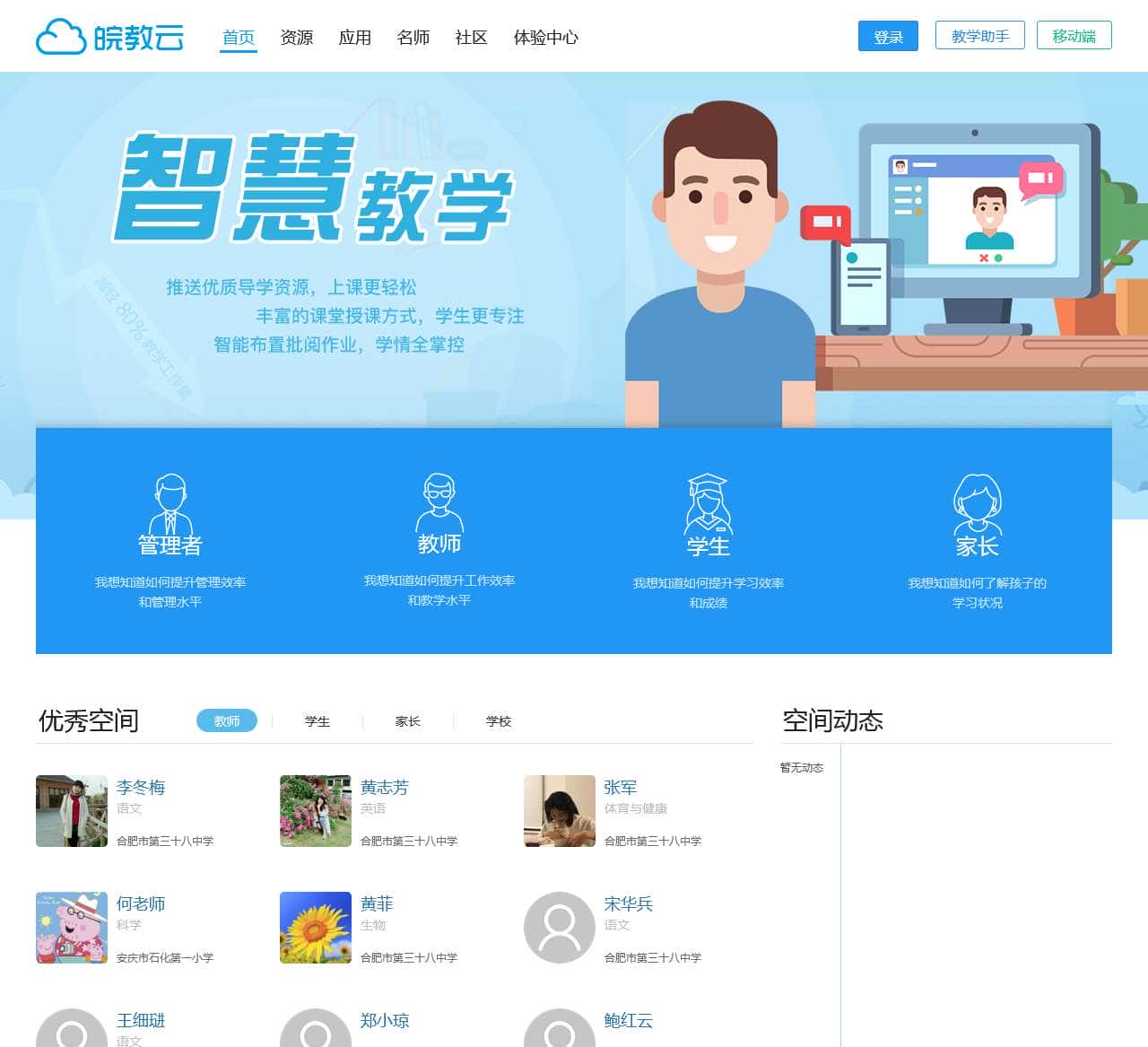 皖教云是以云计算为基础,通过信息技术与教学过程深度融合,搭建涵盖核心应用的教育云平台,同时汇聚第三方优质资源及应用,面向教育机构、老师、学生、家长提供一站式的教学服务。