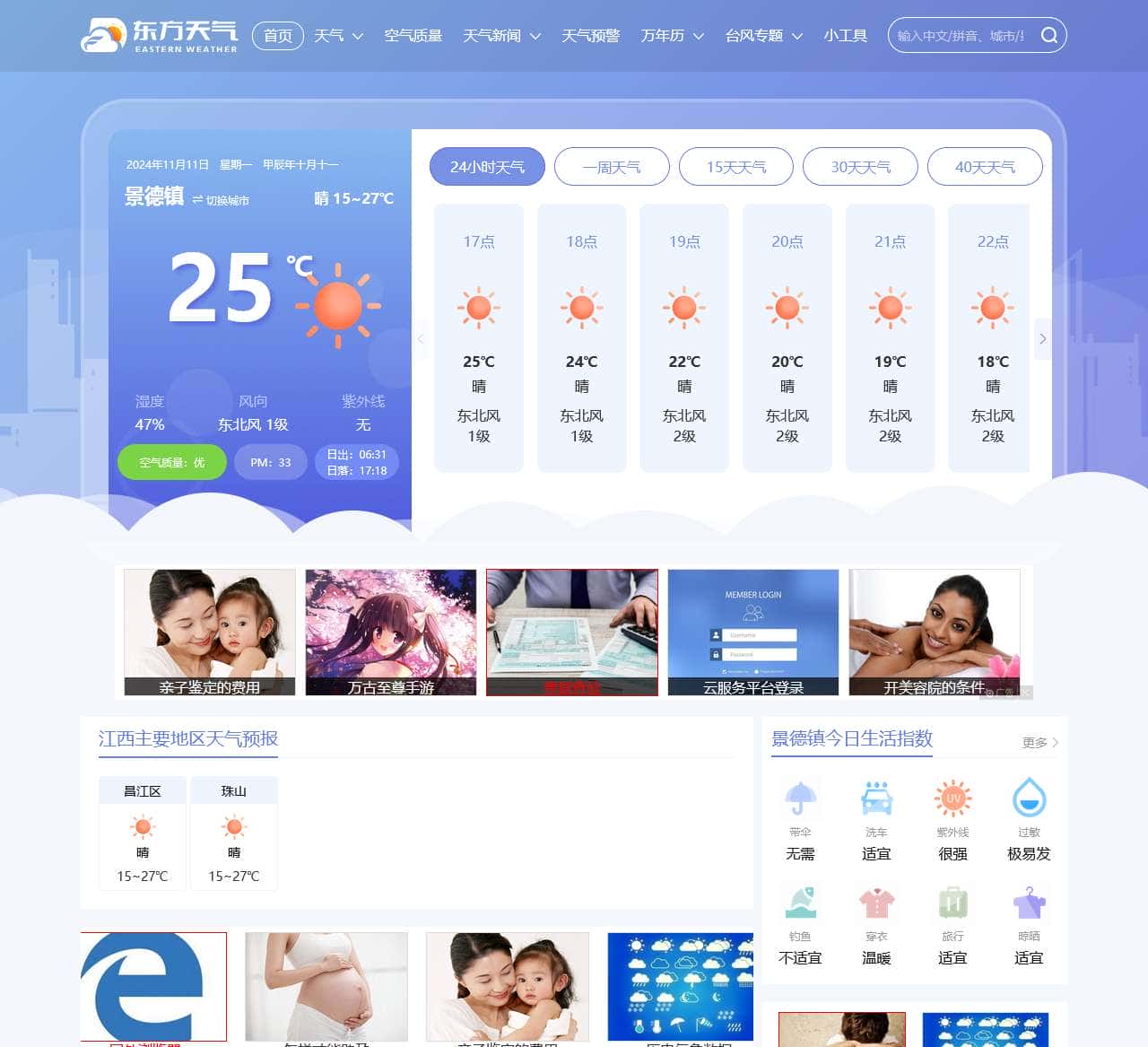 | 天气预报 | 24小时天气、一周天气、15天天气、30天天气、40天天气 |