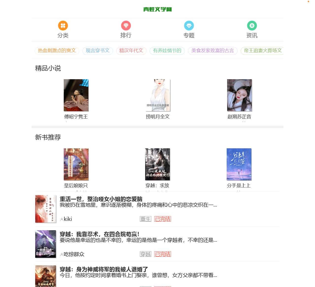 青蛙文学网是一个专注于推荐多种类型的小说平台,这里有最新的都市小说、玄幻小说、武侠小说、官场小说、恐怖小说、灵异小说、悬疑小说、历史小说、军事小说、游戏小说、竞技小说、 现情小说、穿越小说、重生小说、奇幻小说、仙侠小说、职场小说、科幻小说、耽美小说、短篇小说、古言小说等应有尽有!