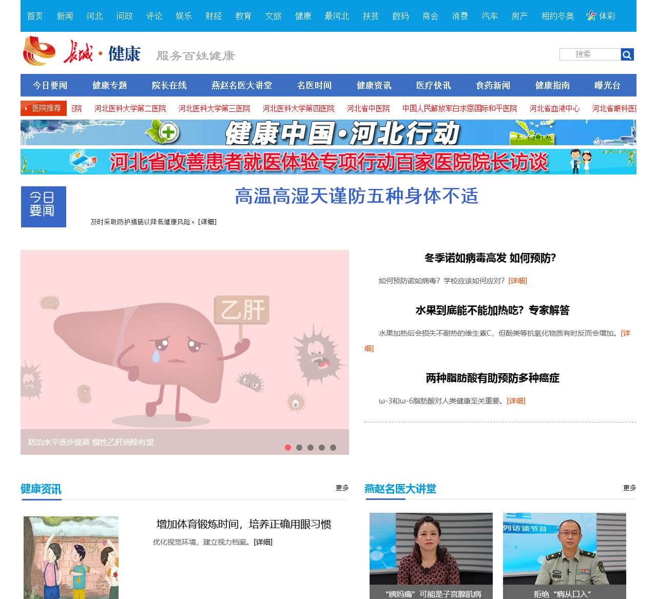 长城网健康频道是长城新媒体主办的健康类新闻综合门户网站,第一网络媒体,提供全面,专业,权威的健康养生知识,医疗资讯,食药新闻等内容.