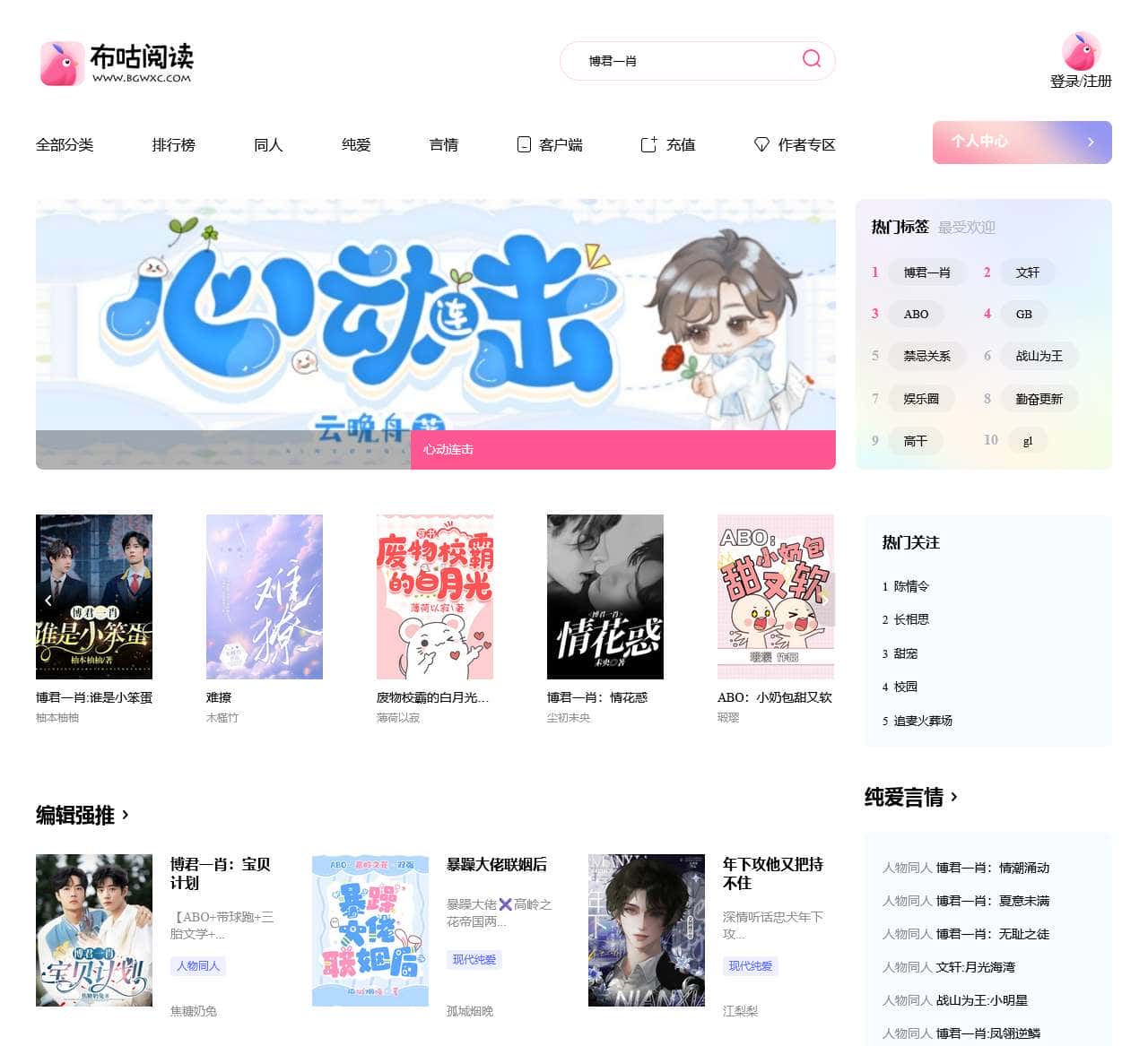 布咕阅读提供海量博君一肖、文轩及热门影视剧同人文,也提供海量好看的禁忌关系纯爱和GB言情内容。提供优质中长篇同人小说、耽美小说、bl小说、言情小说。 ...