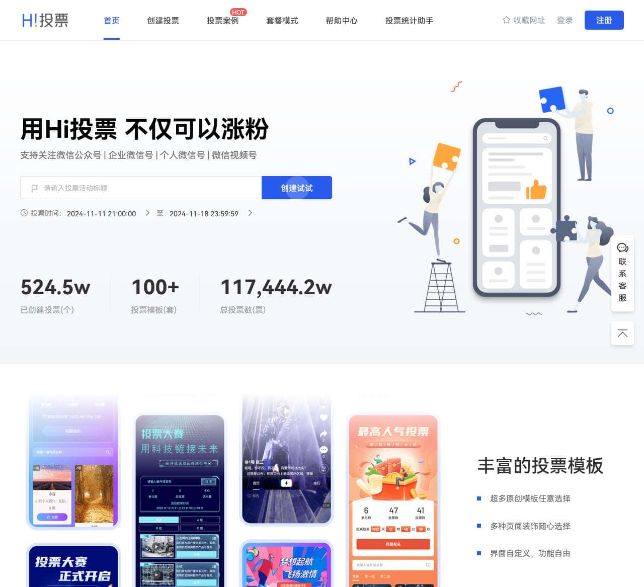 Hi投票是免费微信投票制作平台,支持制作单选/多选投票、音视频投票、图文投票等各种类型评选活动,不到1分钟即可发起一场投票活动!拥有丰富的活动模板,丰富的防刷票设置和黑名单库,提供专业稳定的投票评选制作和定制服务。