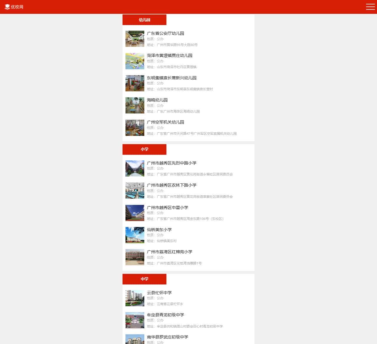 | 幼儿园 | 广东省公安厅幼儿园 | 公办 | 广州市黄华路95号大院80号 |