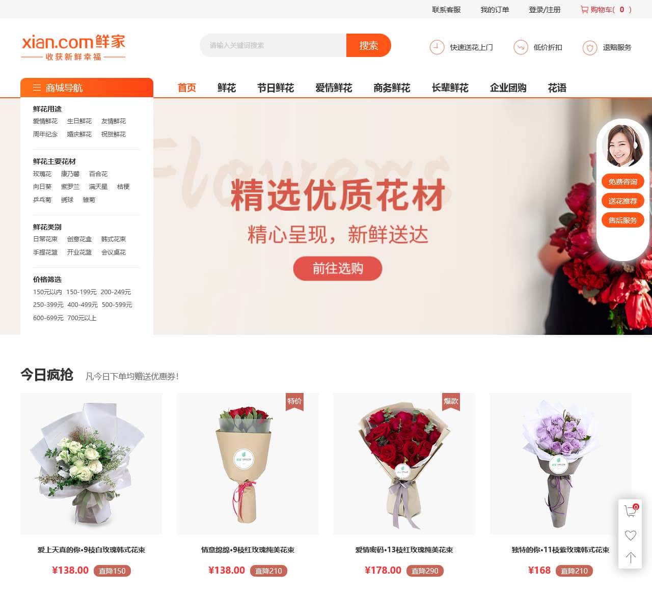 鲜家网,这里你能接触到精致生活资讯,品位艺术先人一步,收获新鲜幸福。鲜家网(xian.com)专注鲜花速递服务,引领花艺潮流,支持24小时网上定花送花,快至1小时免费送花上门,个性鲜花礼品定制,传递爱与温情!