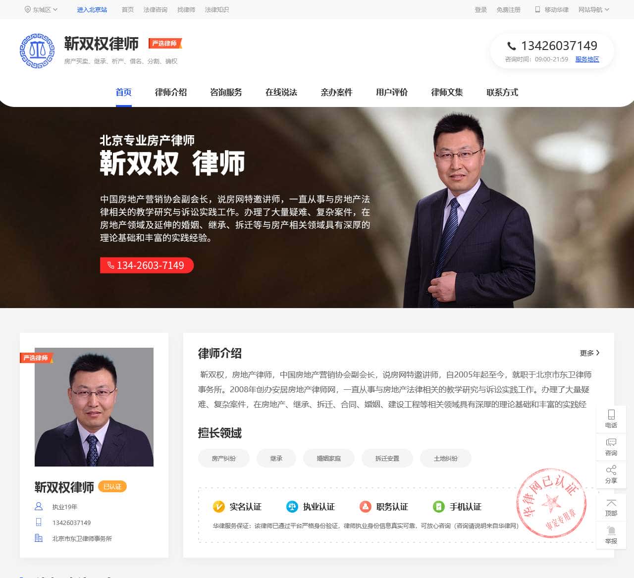 靳双权,北京房地产律师,中国房地产营销协会副会长,北京市东卫律师事务所房地产业务部,咨询热线13426037149。主要代理二手房买卖、房地产继承、确权、析产、借名买房案件,如果...