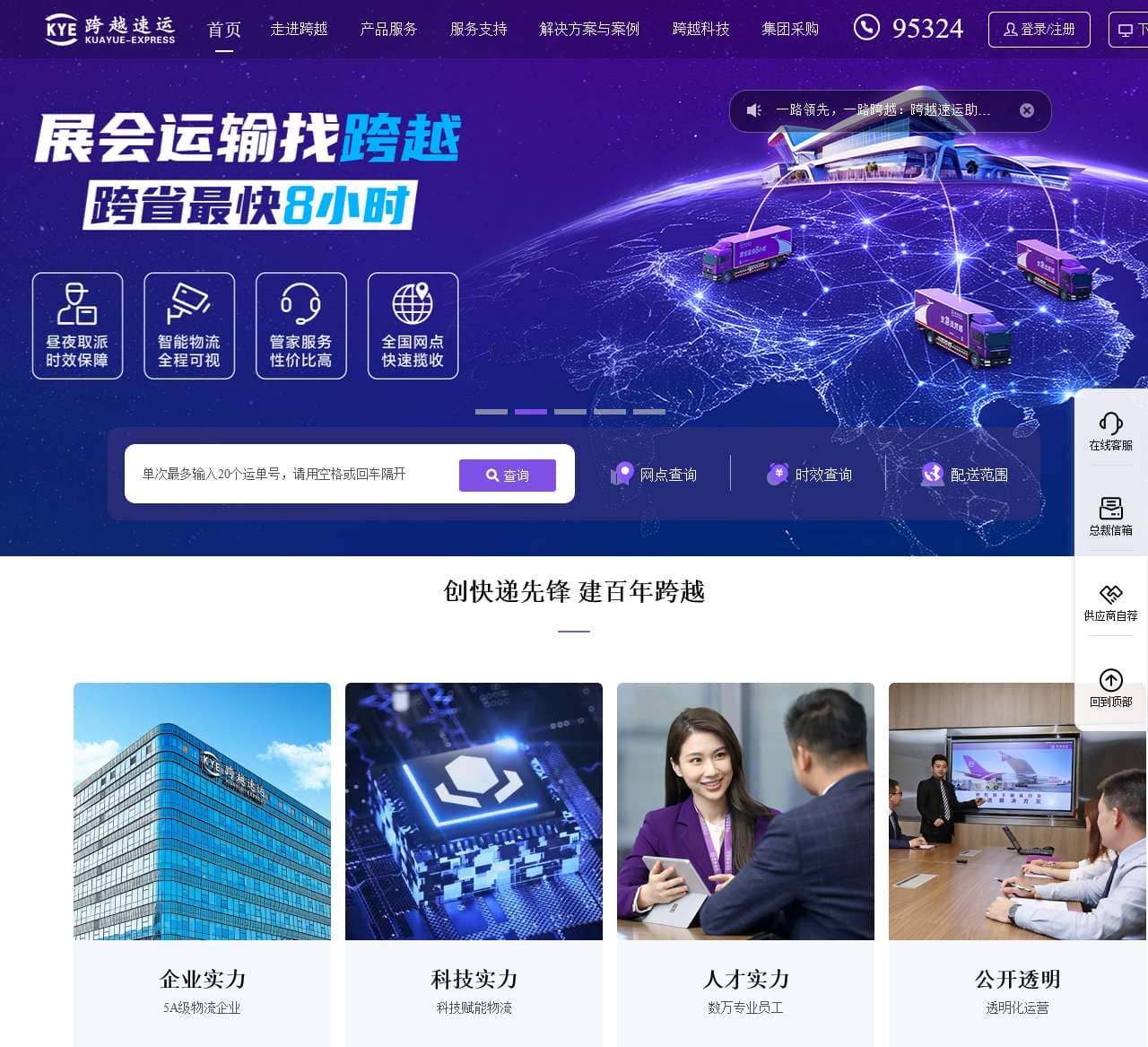 | 服务支持 | 寄件支持, 快速寄件, 国际速递, 跨越整车, 查询服务, 查件, 时效查询, 网点查询, 配送范围 |
