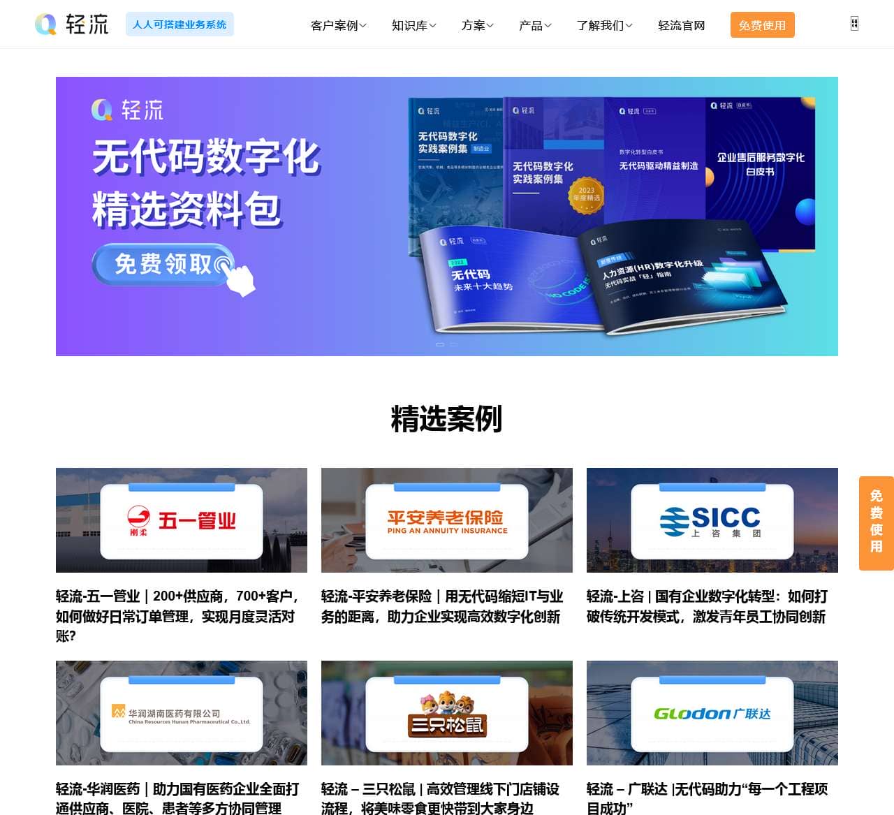 轻流资讯,无代码低代码系统搭建平台,具备低代码功能,零代码开发,可自定义的在线业务流程管理工具,适合saas平台、人事招聘系统、用户管理系统、工程管理、设备管理系统、生产管理、进销存、疫情防控等场景,50万+企业的客户案例和行业最佳实践供你参考,助力企业数字化转型让工作更有序而高效。